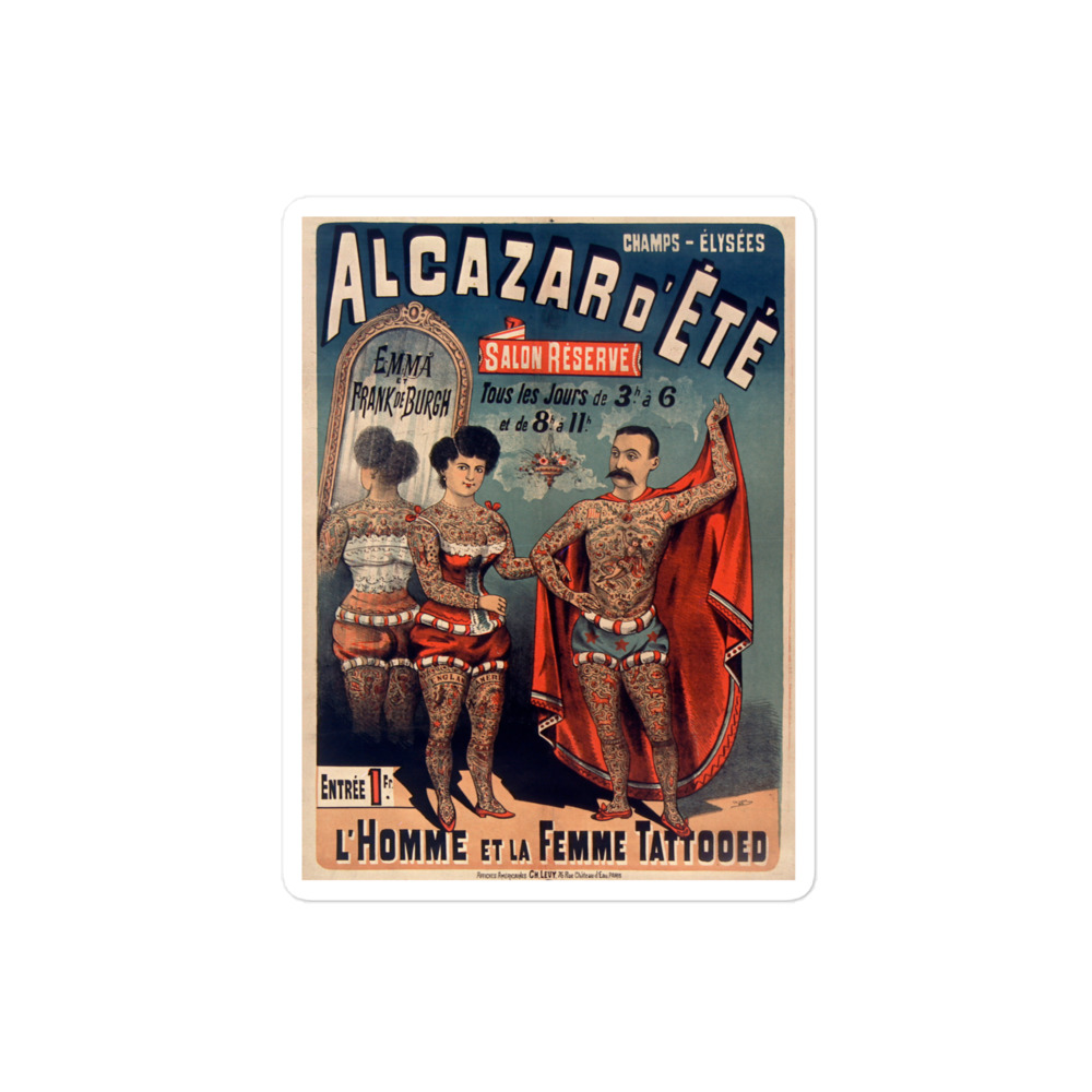 Sticker med ett gammal detaljrik cirkusposter som tryck. Tillverkad i slitstark vinyl med en höjd på 10 cm. Kommer bli en perfekt dekoration på bilen, skrivboken eller din laptop.