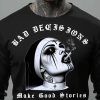 Långärmad tröja i en tunnare skön kvalitet med en nunna som röker en cigarett och texten ’Bad decisions make good stories’ som dekoration på framsidan. Tillverkad i 100% bomull och passar både män och kvinnor som ofta gör dåliga val i livet.