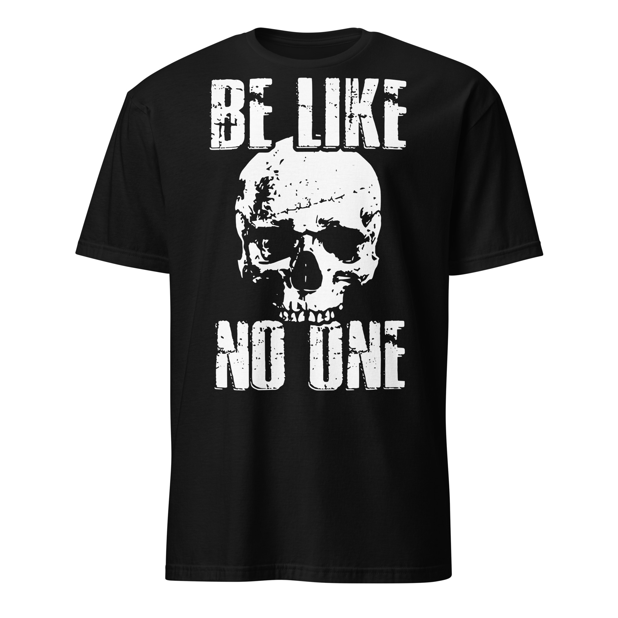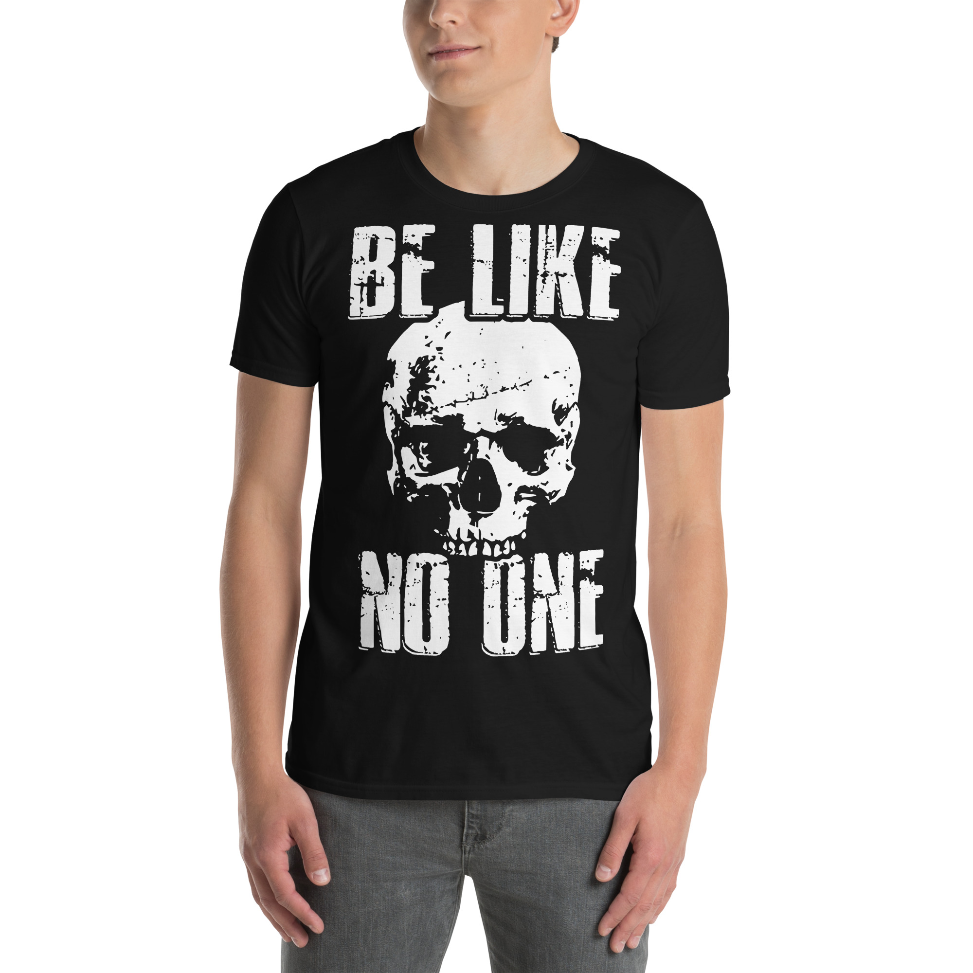 T-shirt i svart med ett alternativt tryck med en dödskalle och texten ’Be like no one’ som dekoration på framsidan. Passar perfekt till både män och kvinnor som älskar den alternativa klädstilen. Tröjan är tillverkad i en supermjuk kvalitet i 100% bomull.