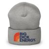 Mössa i grått med en omgjord logo med texten ’Big dick energy’ broderat på framsidan. Tillverkad i ett stretchigt och allergivänligt material i turbo-akryl. Längden är 30 cm och den passar strålande till alla med ett storkukslugn.