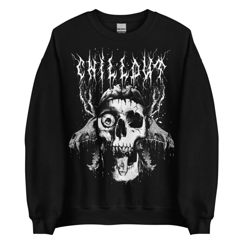 Varm och skön sweatshirt tillverkad i blandad bomull/polyester med en stor dödskalle och texten ’Chillout’ som dekoration på framsidan. Unisex-modell som passar perfekt till både honom och henne.