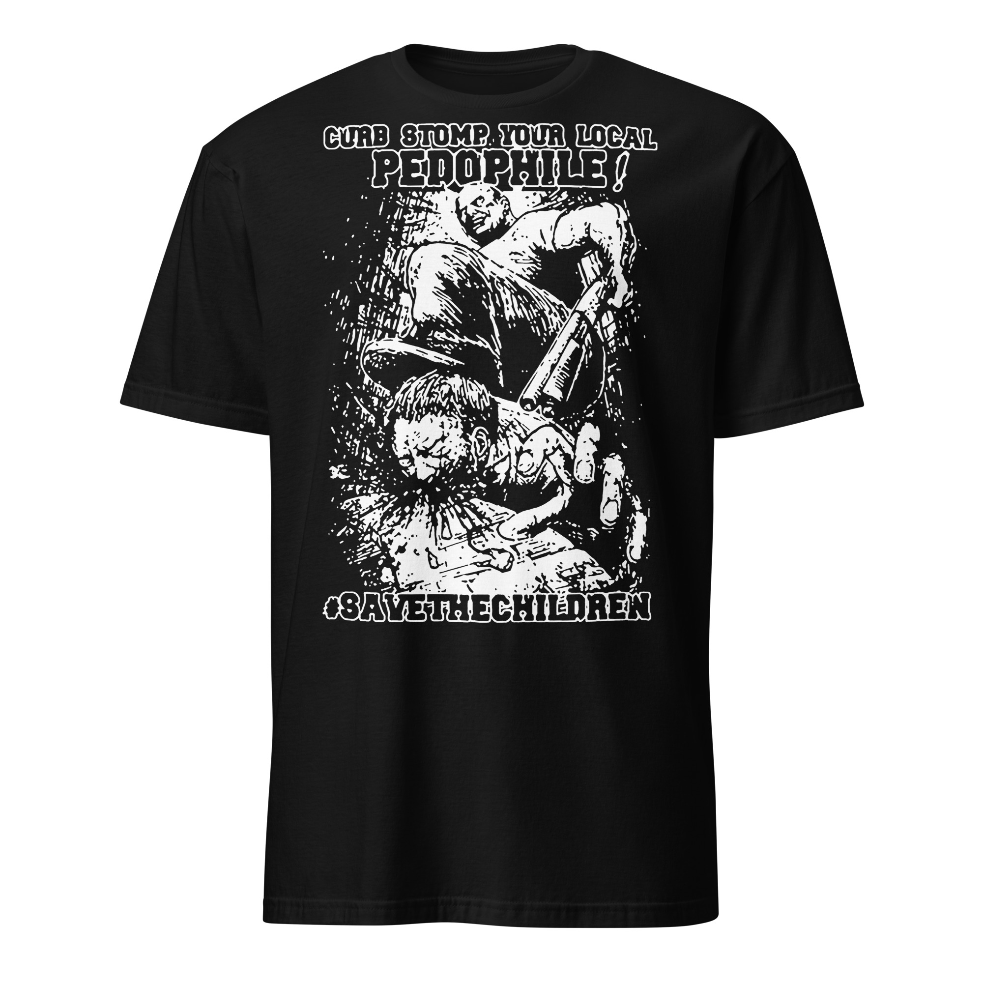 T-shirt i svart med ett stort tryck med texten ’Curb stomp your local pedophile’ som dekoration på framsidan. Passar perfekt till kvinnor och män som HATAR pedofiler. Tröjan är tillverkad i en supermjuk kvalitet i 100% bomull.