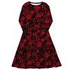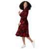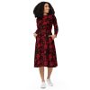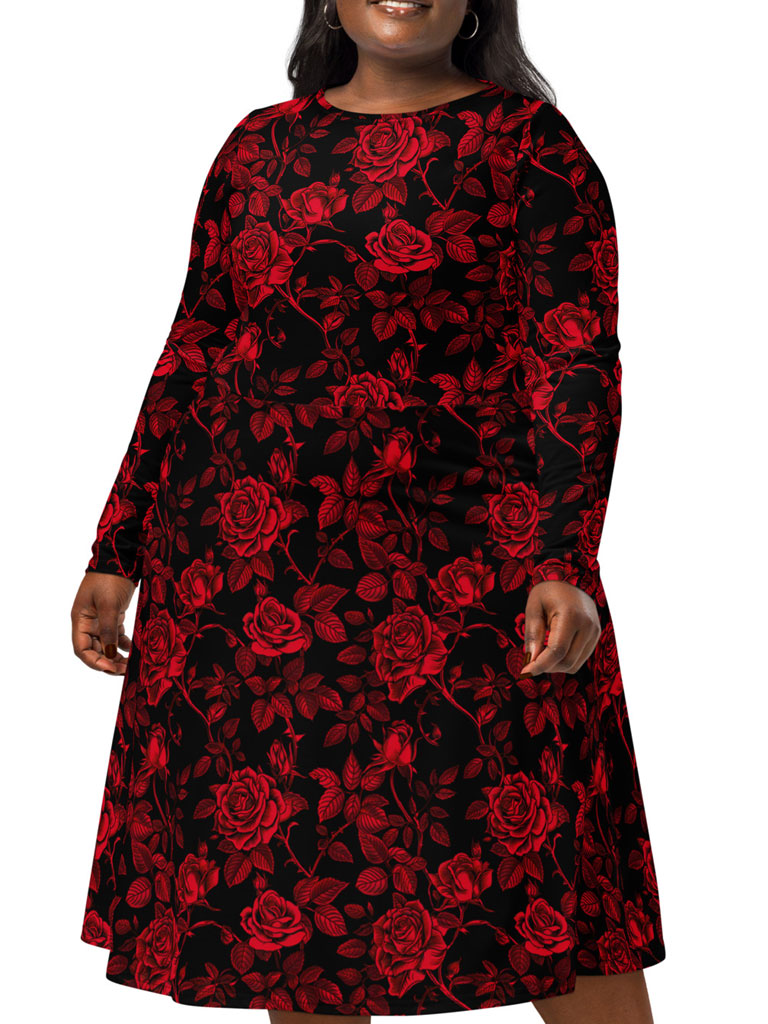Fantastisk klänning i lång modell med mörkröda rosor som tryck på både fram- och baksidan. Passar alla oss som inte kan få nog av den mörka gotiska stilen. Materialet är en stretchig och följsam blandning av polyester och elastan. Klänningen är otroligt bekväm och mjuk, tillverkad i blandad polyester och elastan med mycket stretch. Klänningen har även sidofickor. Denna klänning trycks efter beställning och sys sedan exklusivt ihop för hand och skickas till dig direkt från leverantören.