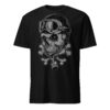 T-shirt i svart med en stor biker-dödskalle som dekoration på framsidan. Passar perfekt till kvinnor och män som älskar den alternativa klädstilen. Tröjan är tillverkad i en supermjuk kvalitet i 100% bomull.