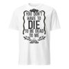 T-shirt i vitt med texten ’You don’t have to die to be dead to me’ som dekoration på framsidan. Passar perfekt till både män och kvinnor och är tillverkad i en supermjuk kvalitet i 100% bomull.