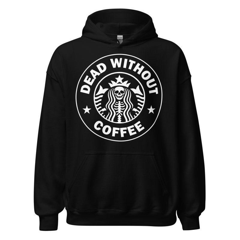 Hoodie i unisex-modell tillverkad i en extra fin kvalitet i blandad bomull och polyester. På framsidan återfinns en välkänd omgjord logo med den nya texten ’Dead without coffee’ som dekoration. Hoodien håller värmen riktigt bra och har ett otroligt mjukt tyg.