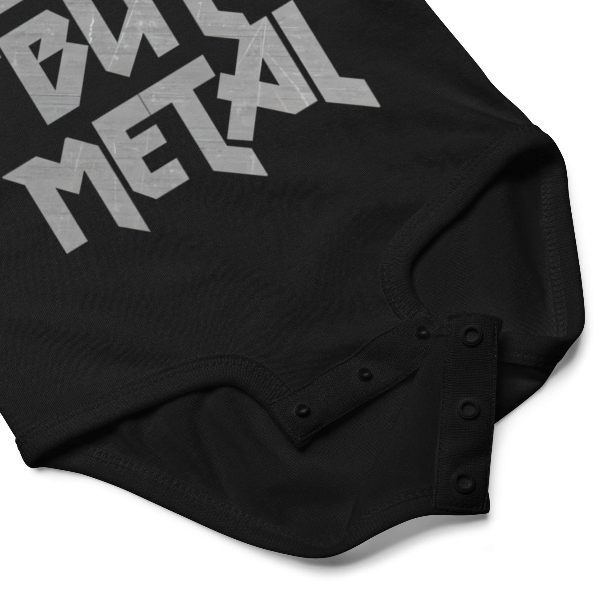 Riktigt söt body i svart med texten ’Death to all but metal’ som dekoration på framsidan. Materialet är 100% ringspunnen bomull i en fin kvalitet. Passar perfekt till alla hårdrocksbebisar.