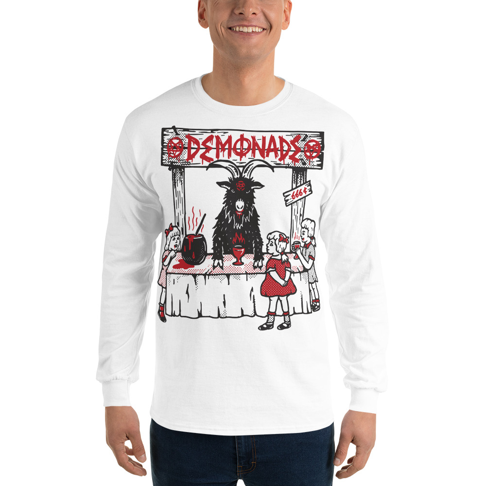 Långärmad tröja i en tunnare skön kvalitet med Baphomet som serverar demonade till små barn som dekoration på framsidan. Tillverkad i 100% bomull och passar alla oss som älskar den alternativa stilen.