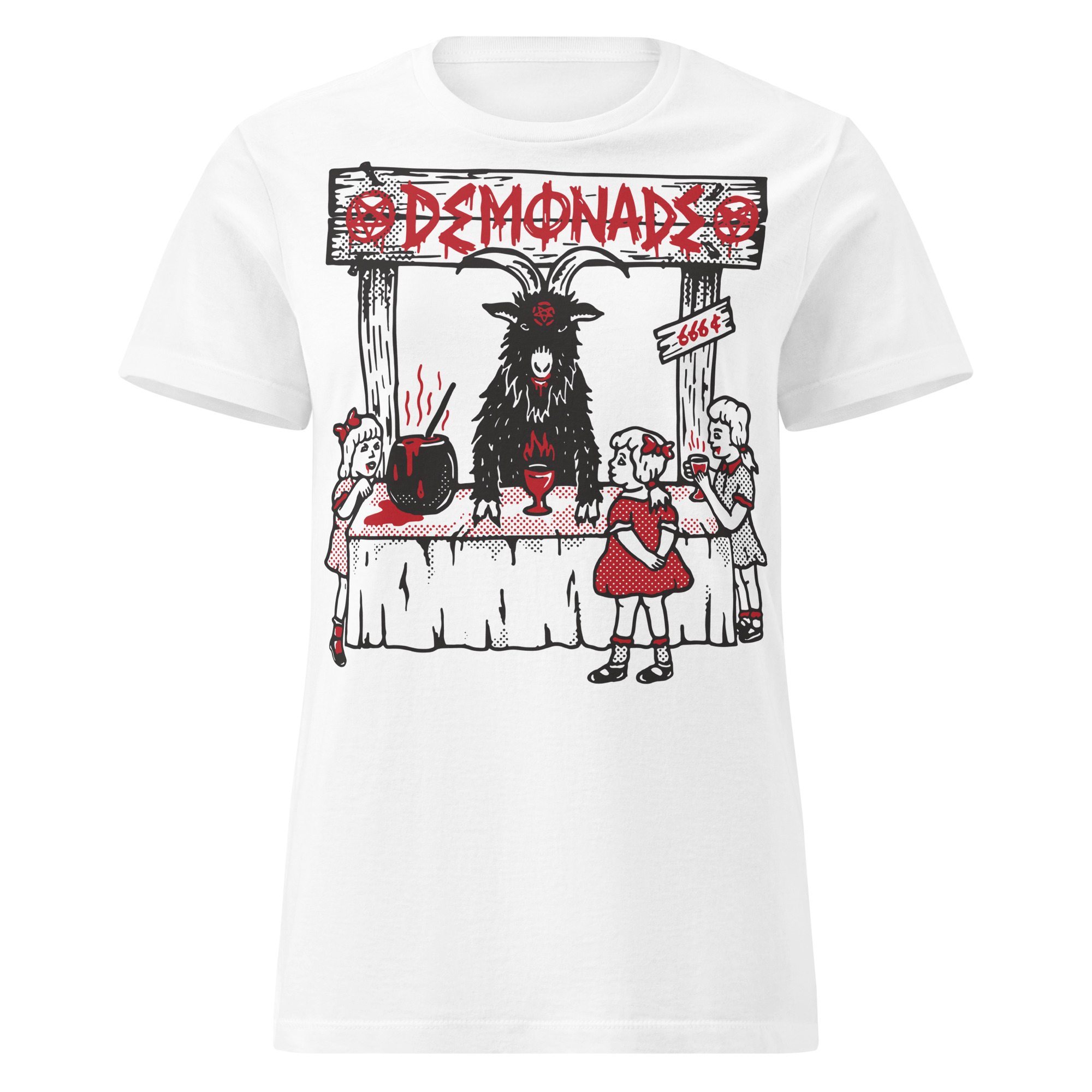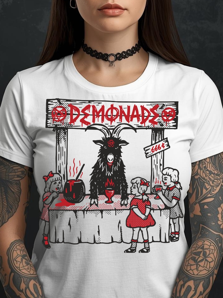 Semi-fitted t-shirt i vitt med Baphomet som säljer demonade till barnen som dekoration på framsidan. Passar perfekt till kvinnor som älskar den alternativa stilen. Tröjan är tillverkad i en supermjuk kvalitet i 100% bomull.