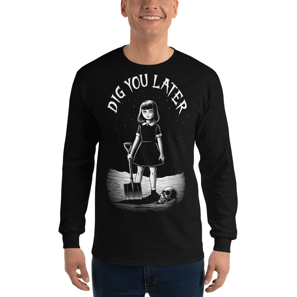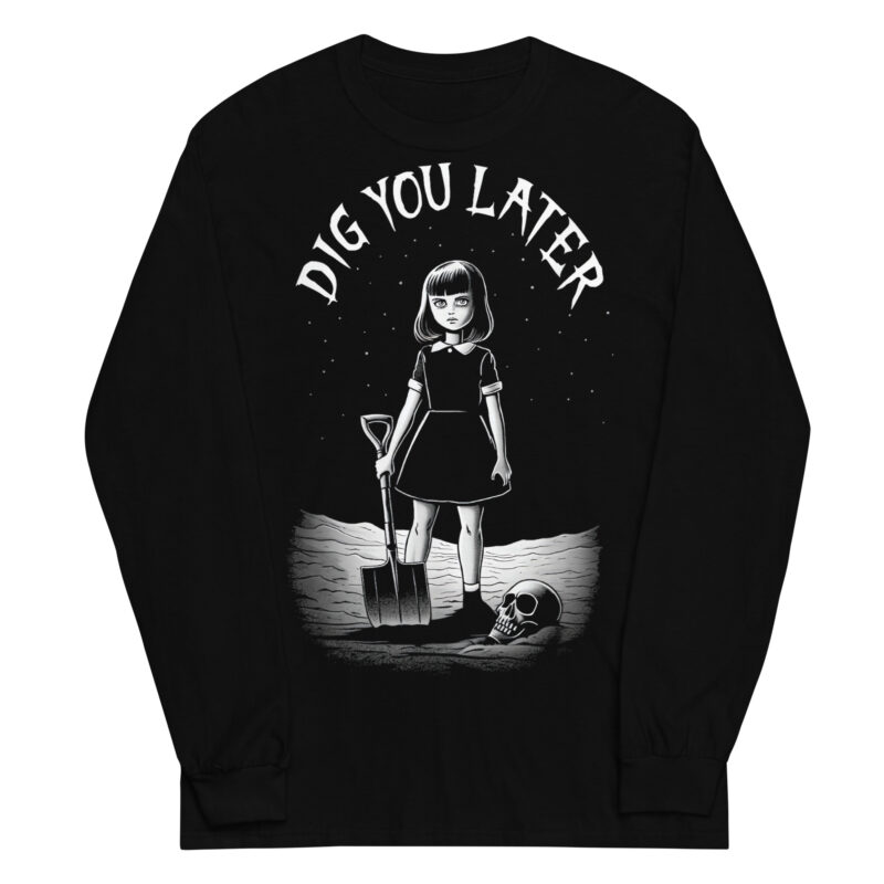 Långärmad tröja i en tunnare skön kvalitet med en liten flicka med en spade och texten ’Dig you later’ som dekoration på framsidan. Tillverkad i 100% bomull och passar alla oss som älskar den alternativa stilen.
