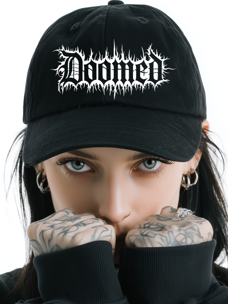 Snygg och stilren keps i trucker-modell med texten ’Doomed’ som tryck på framsidan. Passar perfekt till både kvinnor och män och kan enkelt justeras till önskad storlek.