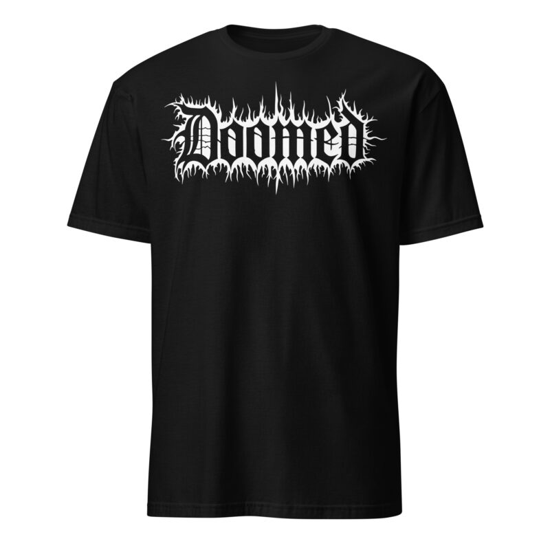 T-shirt i svart med texten ’Doomed’ som dekoration på framsidan. Passar perfekt till kvinnor och män som älskar den alternativa klädstilen. Tröjan är tillverkad i en supermjuk kvalitet i 100% bomull.