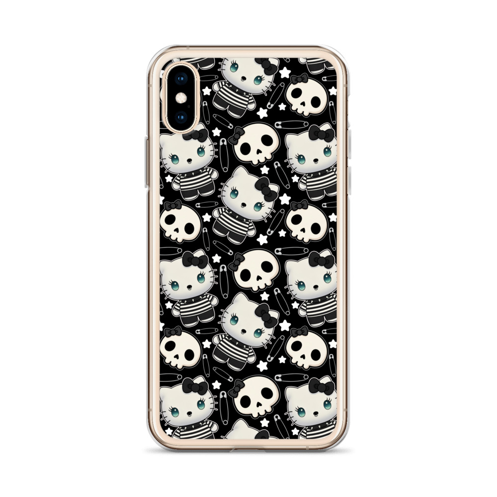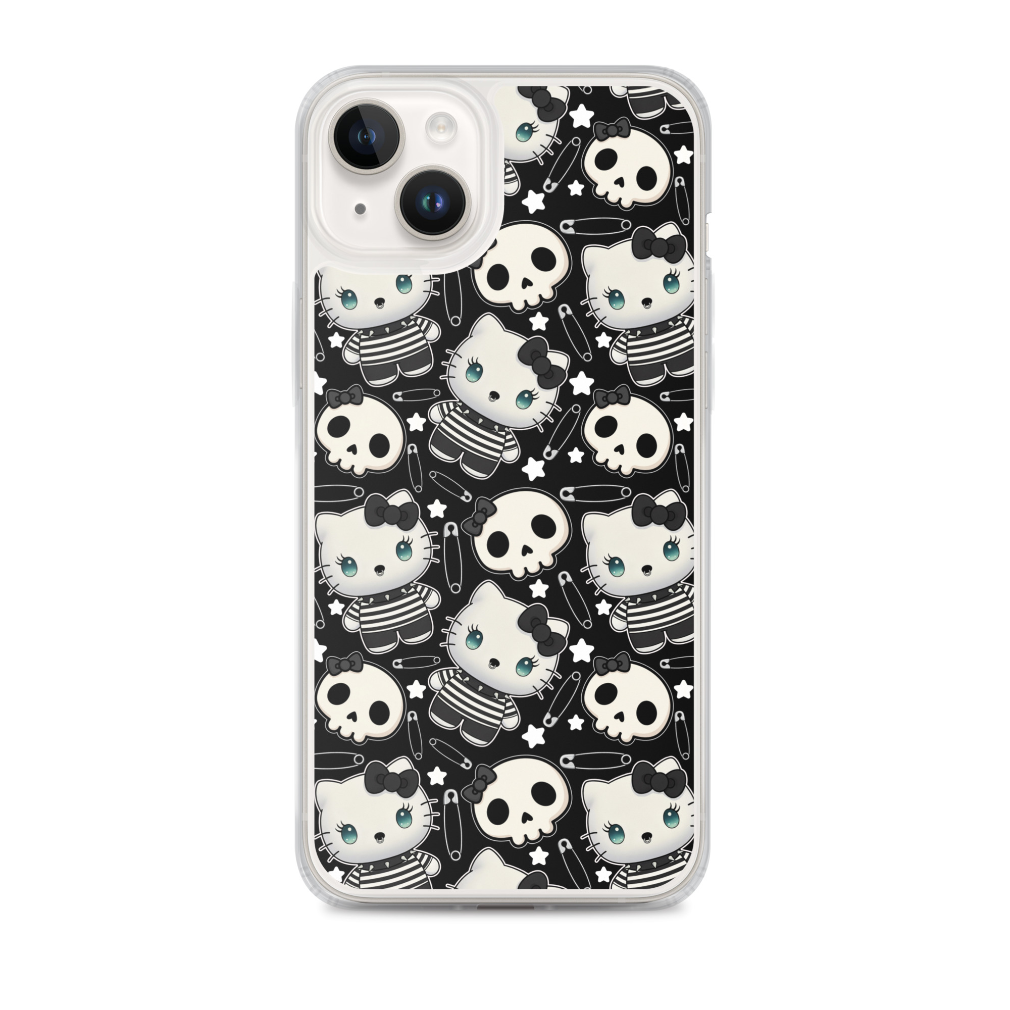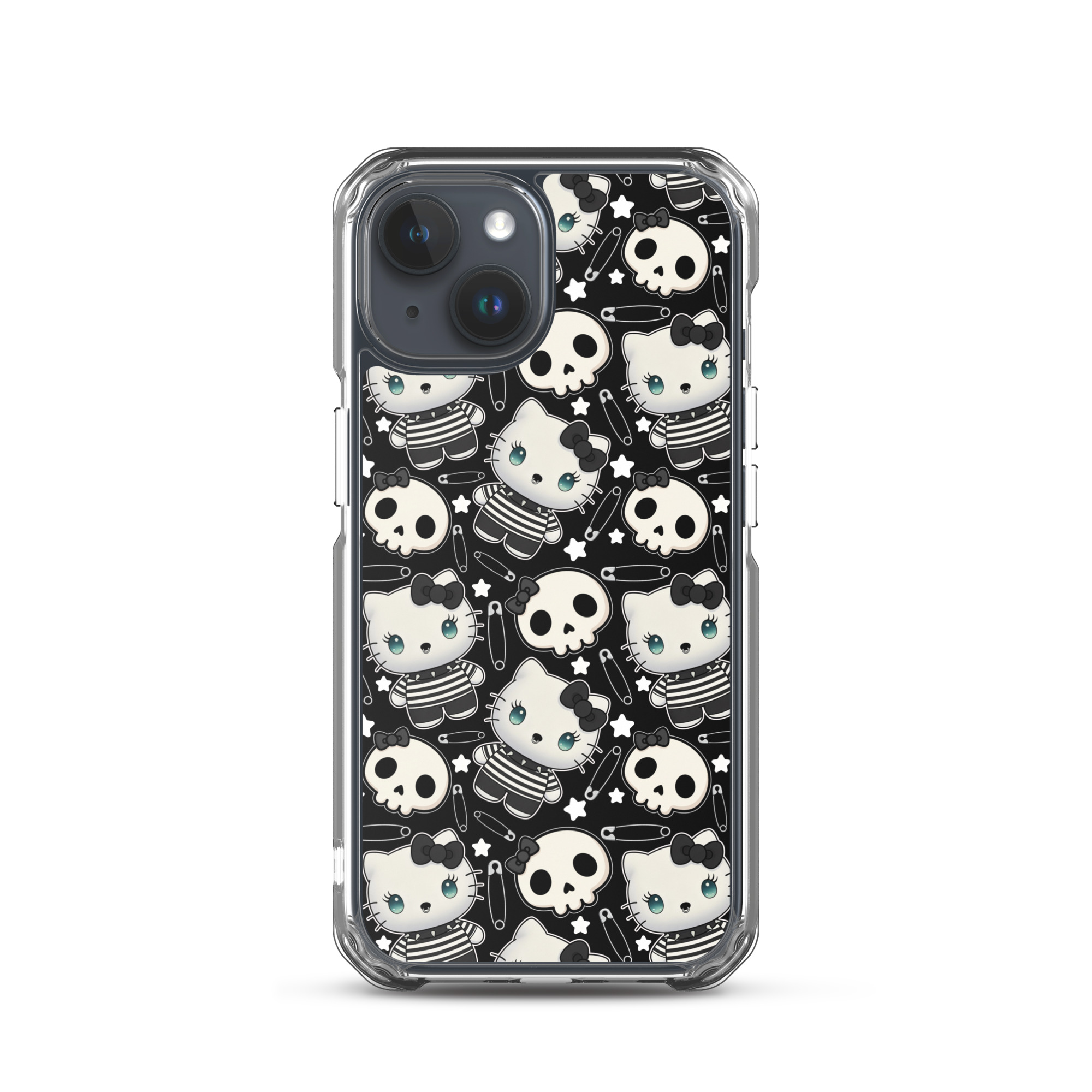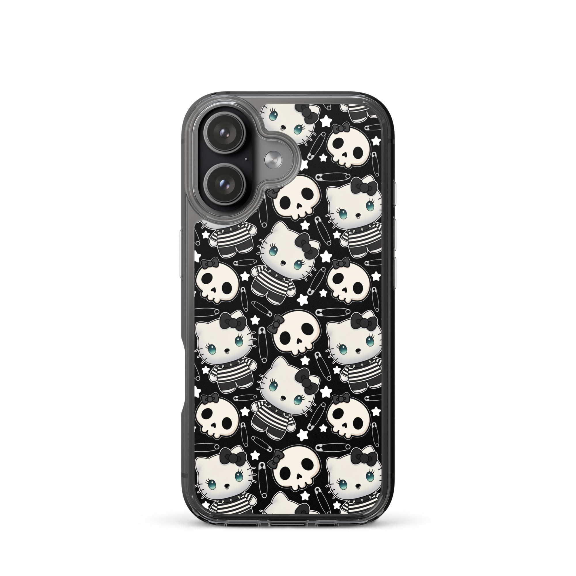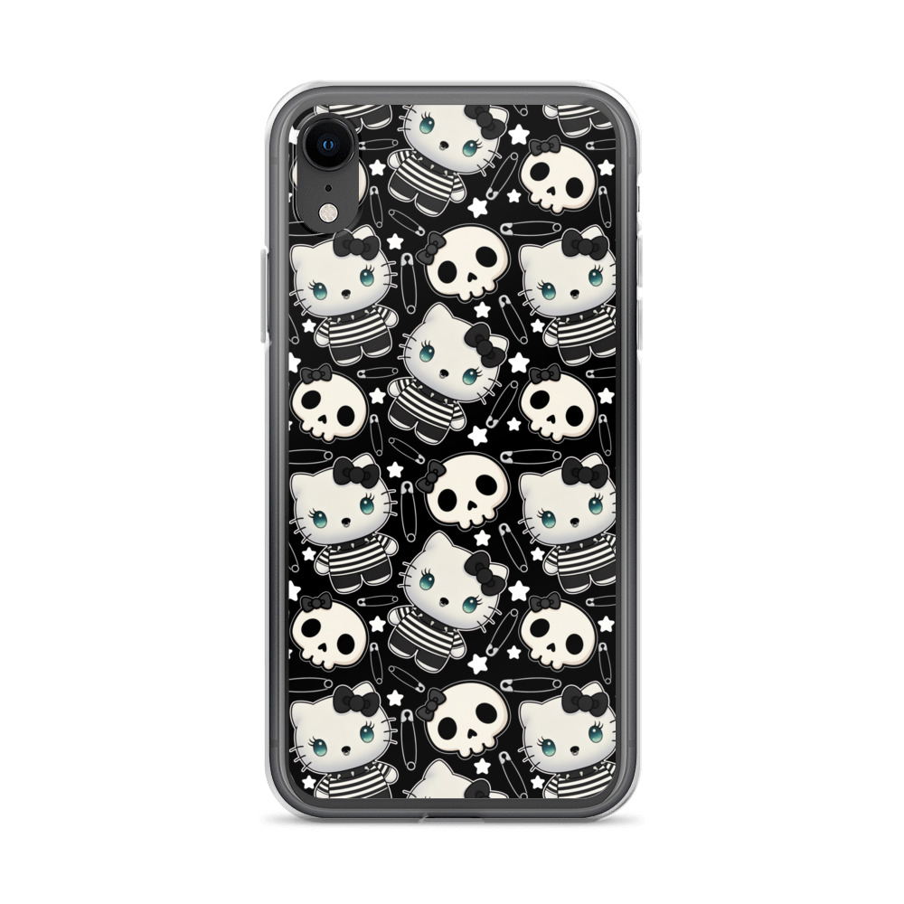 Mobilskal som passar iPhone-modellerna med söta emo-katter, säkerhetsnålar och döskallar som dekoration. Tillverkad i hög kvalitet och skyddar baksidan och sidorna på din telefon mot repor, smuts, olja och damm. Skalet är väldigt slitstarkt på grund av dubbla lager material.
