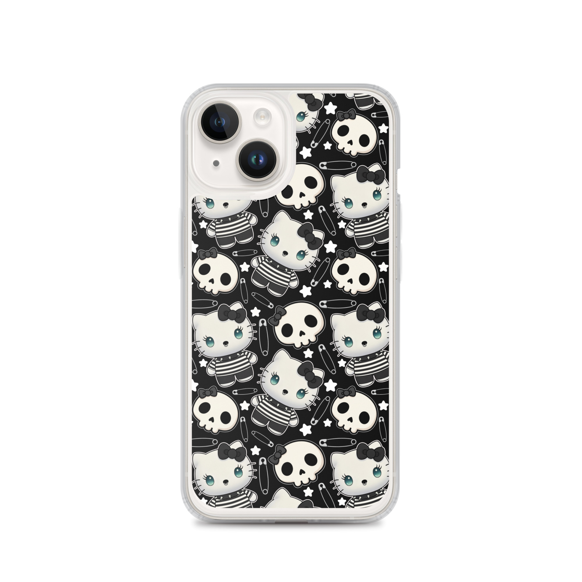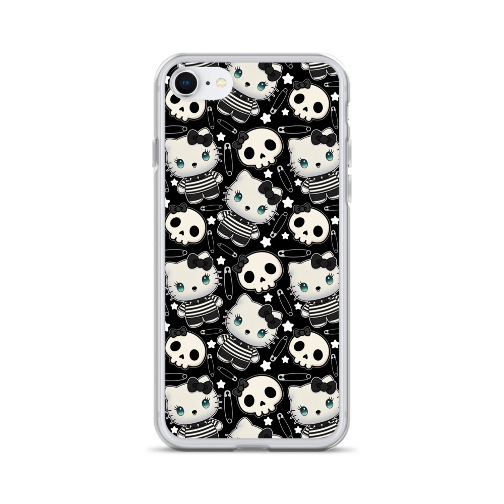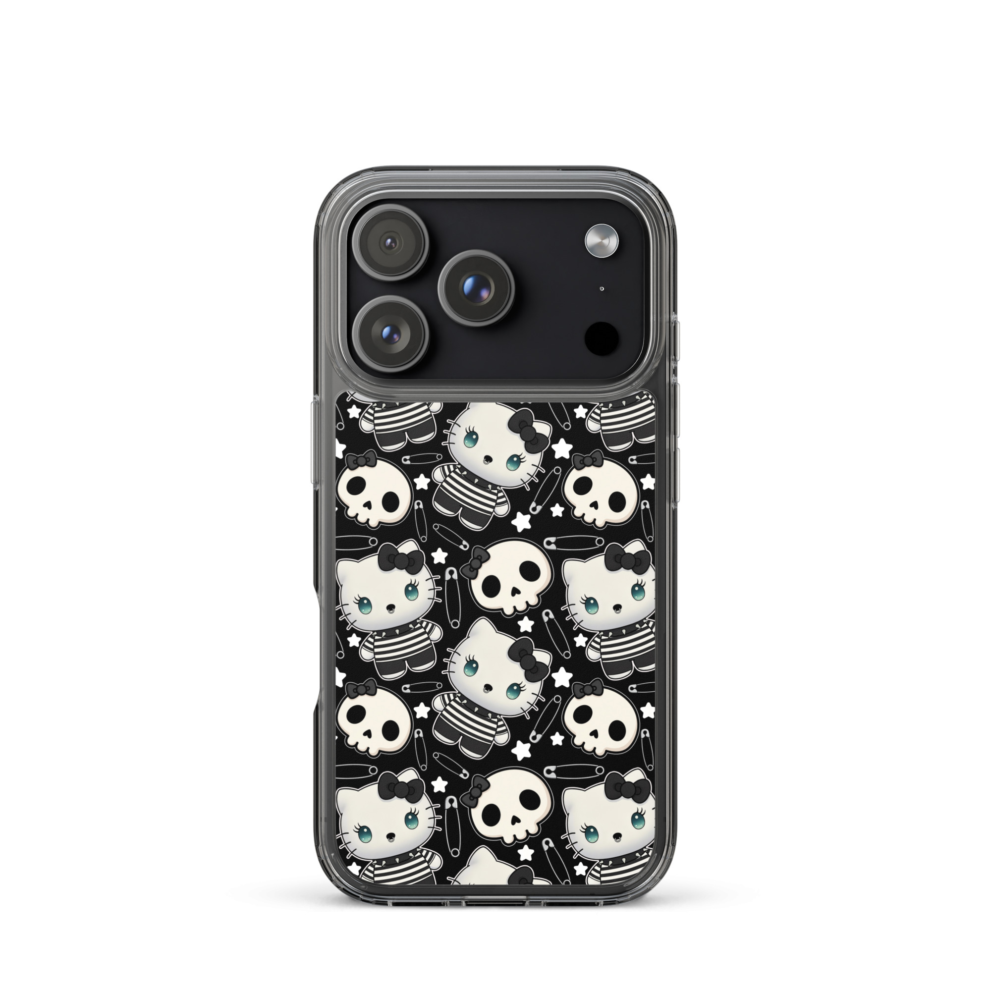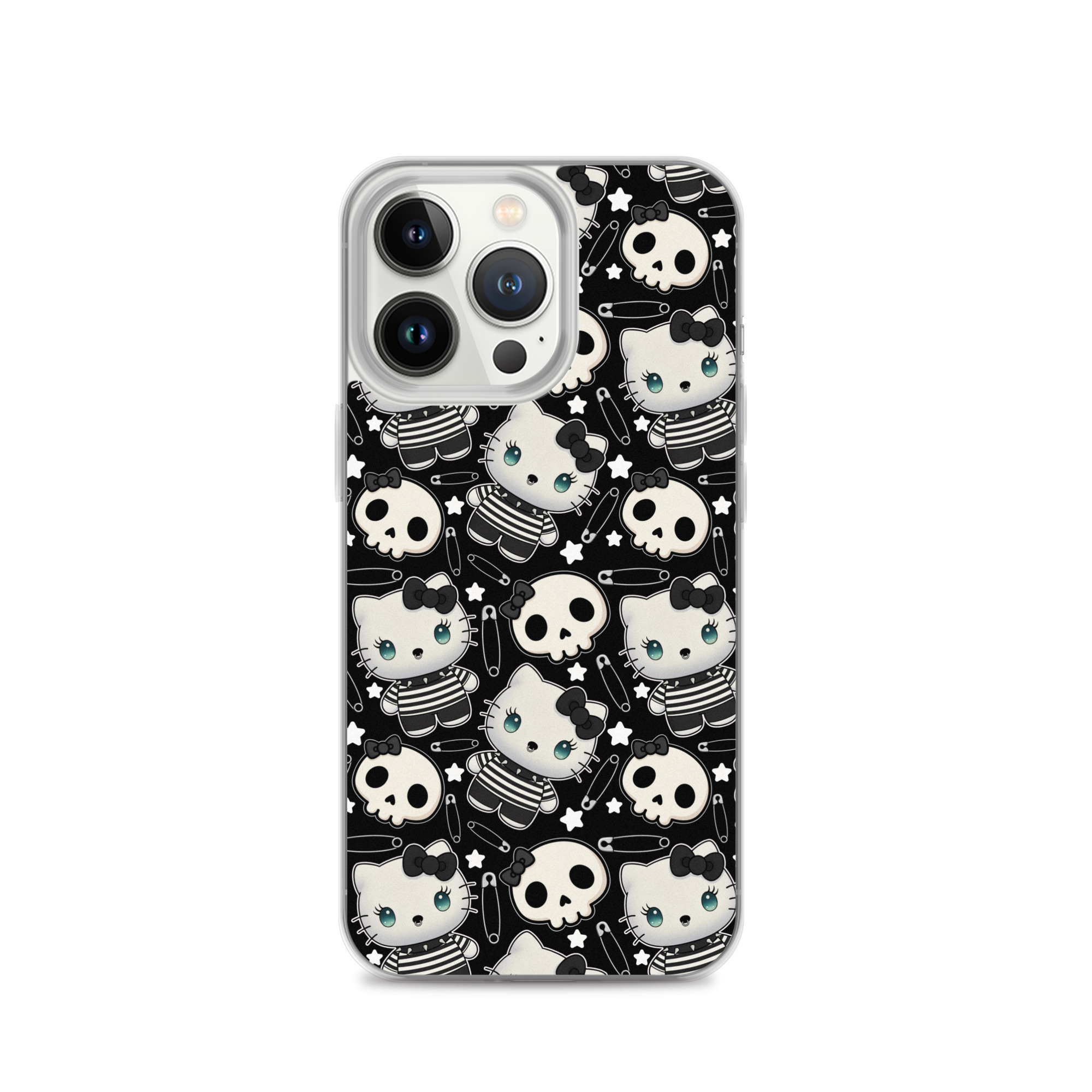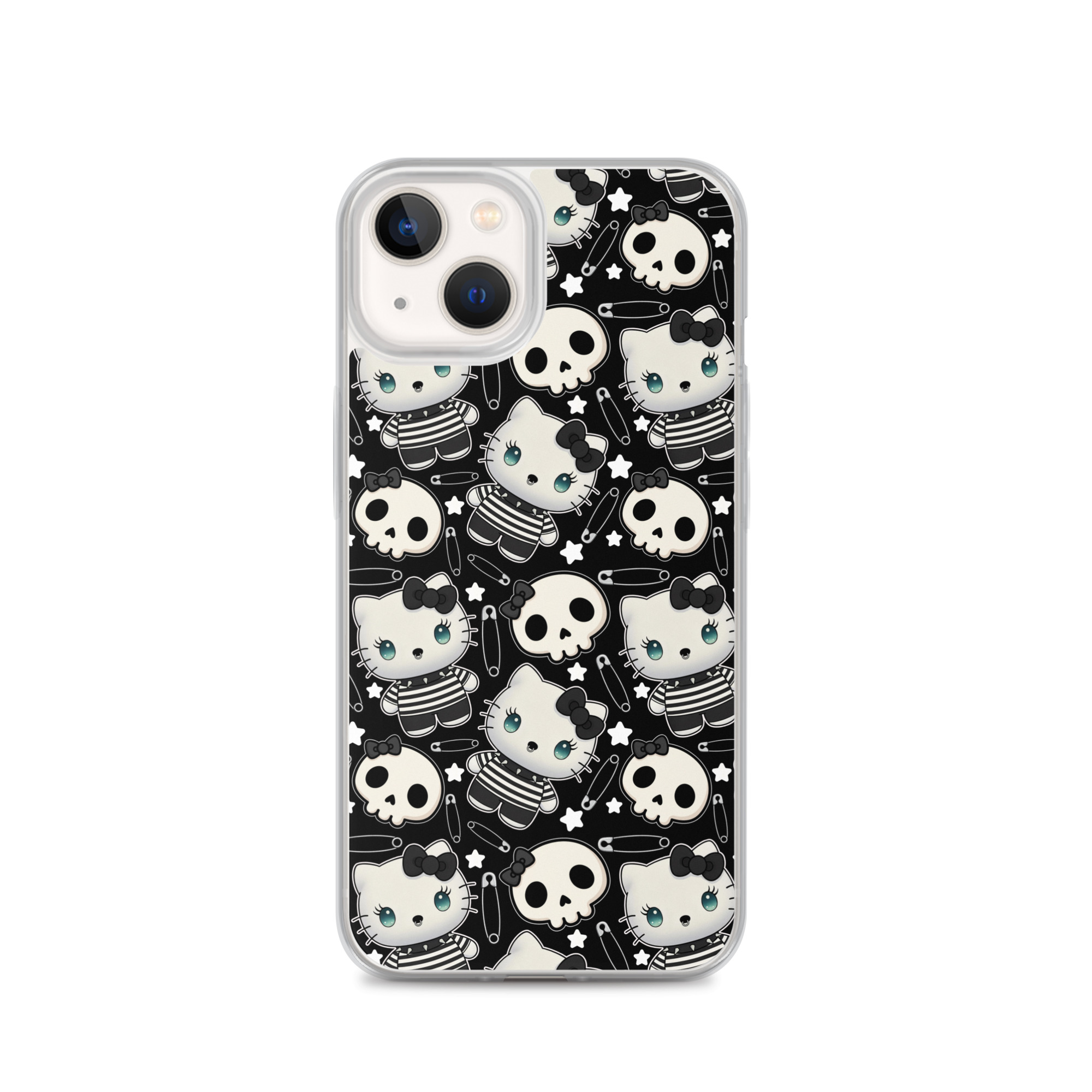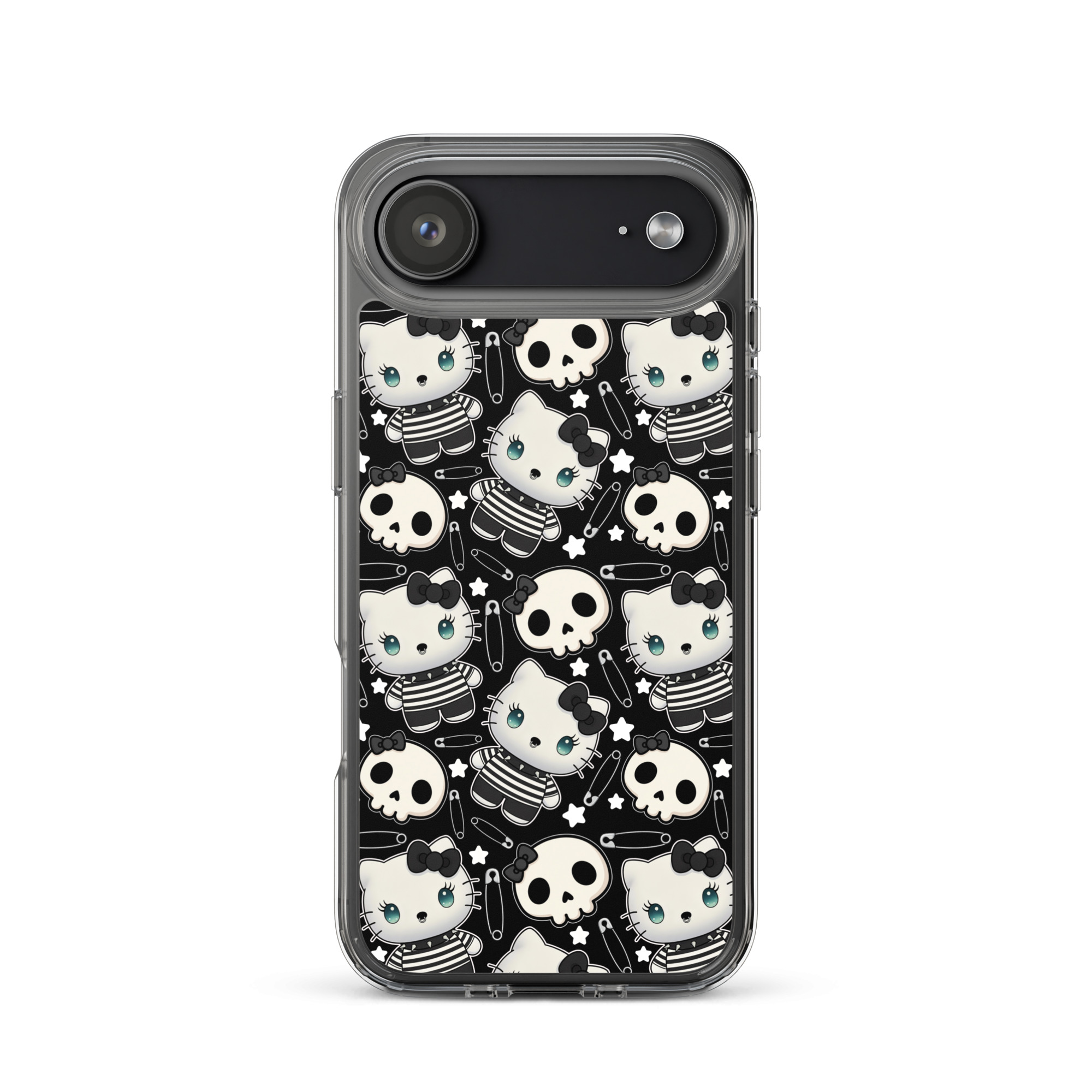 Mobilskal som passar iPhone-modellerna med söta emo-katter, säkerhetsnålar och döskallar som dekoration. Tillverkad i hög kvalitet och skyddar baksidan och sidorna på din telefon mot repor, smuts, olja och damm. Skalet är väldigt slitstarkt på grund av dubbla lager material.