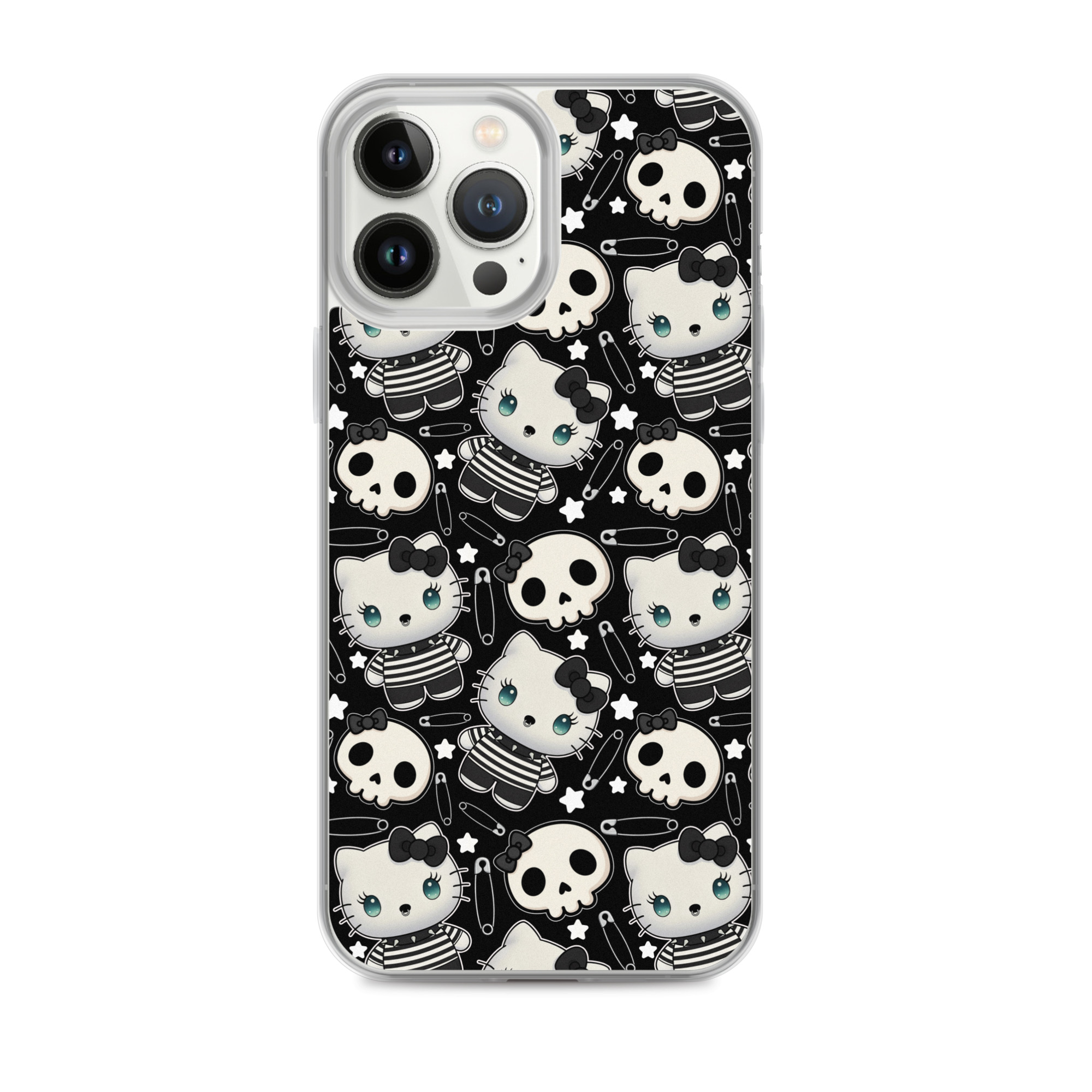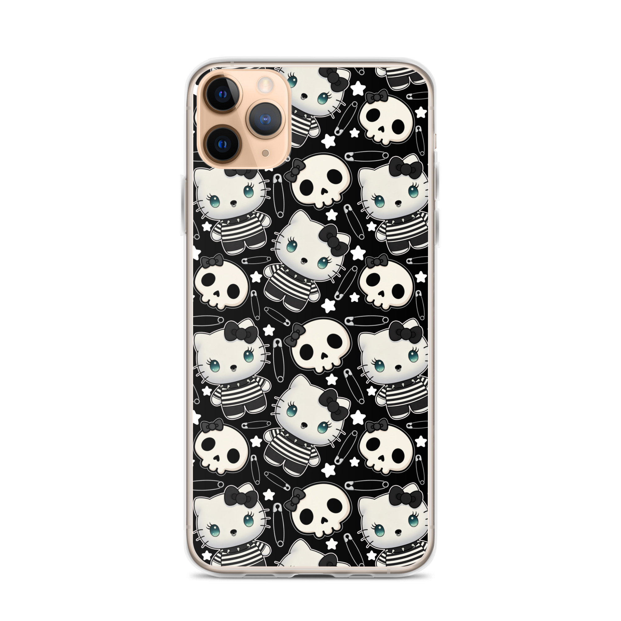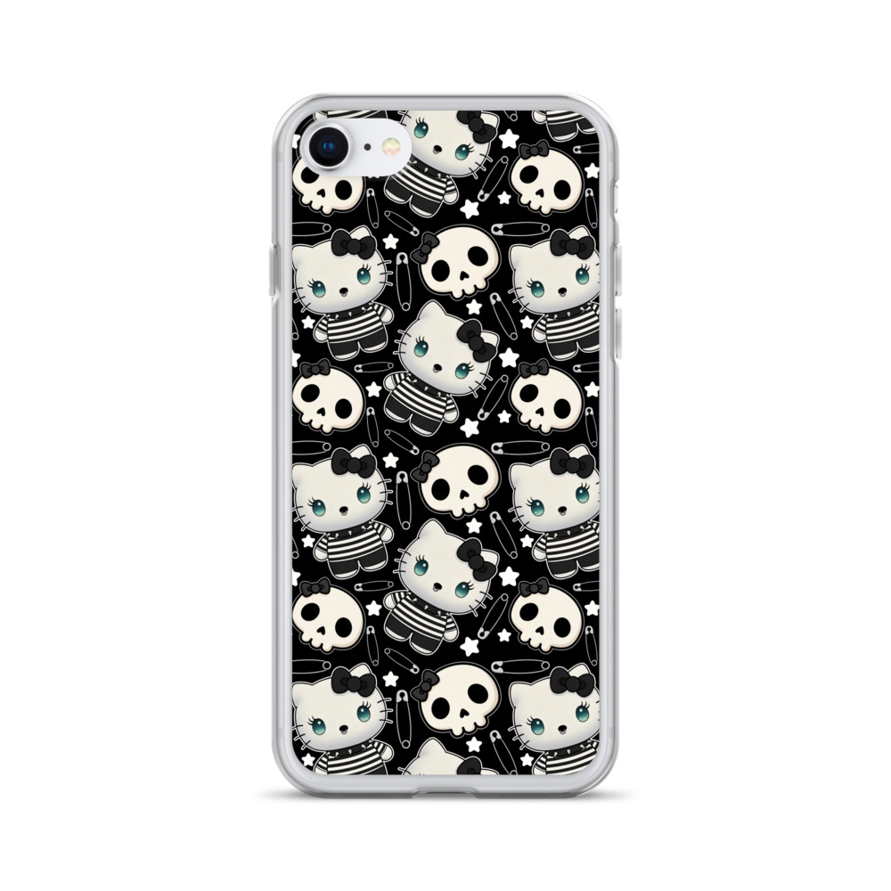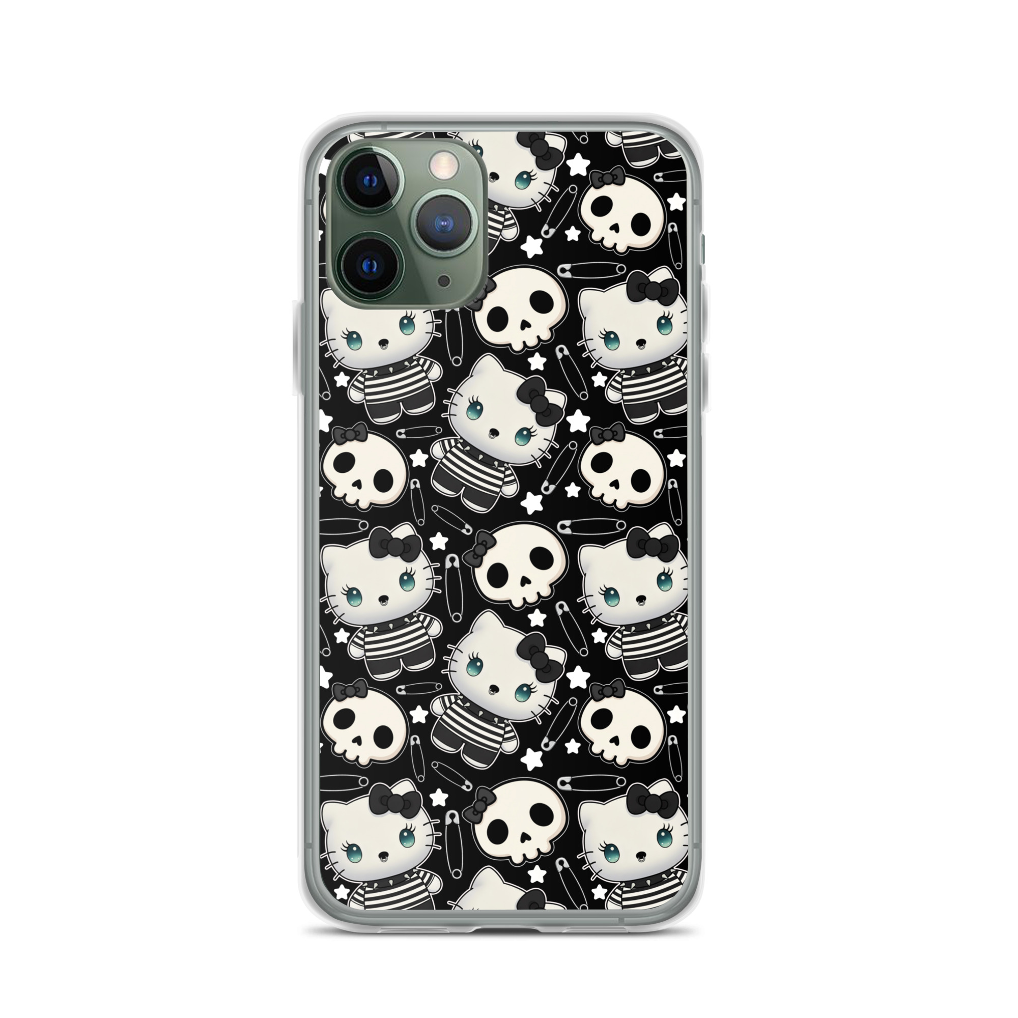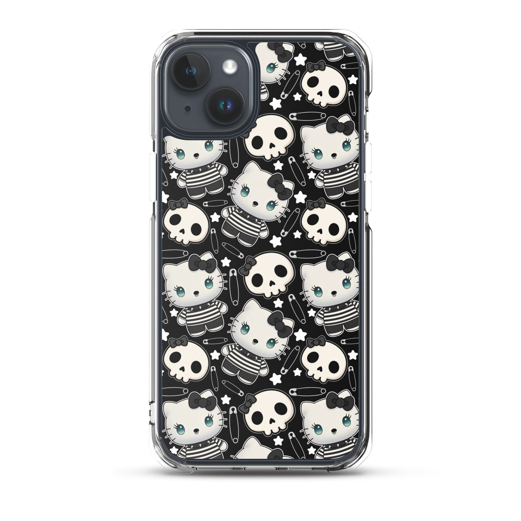 Mobilskal som passar iPhone-modellerna med söta emo-katter, säkerhetsnålar och döskallar som dekoration. Tillverkad i hög kvalitet och skyddar baksidan och sidorna på din telefon mot repor, smuts, olja och damm. Skalet är väldigt slitstarkt på grund av dubbla lager material.