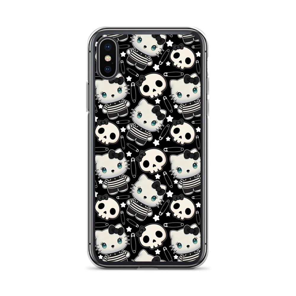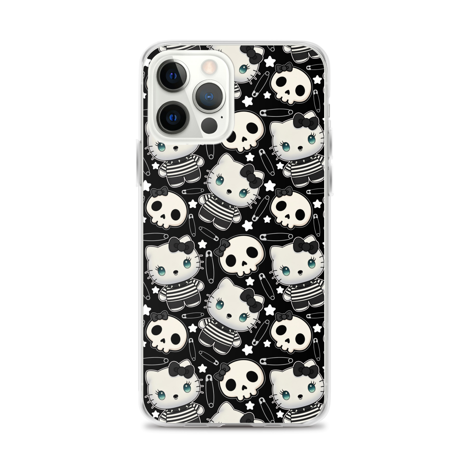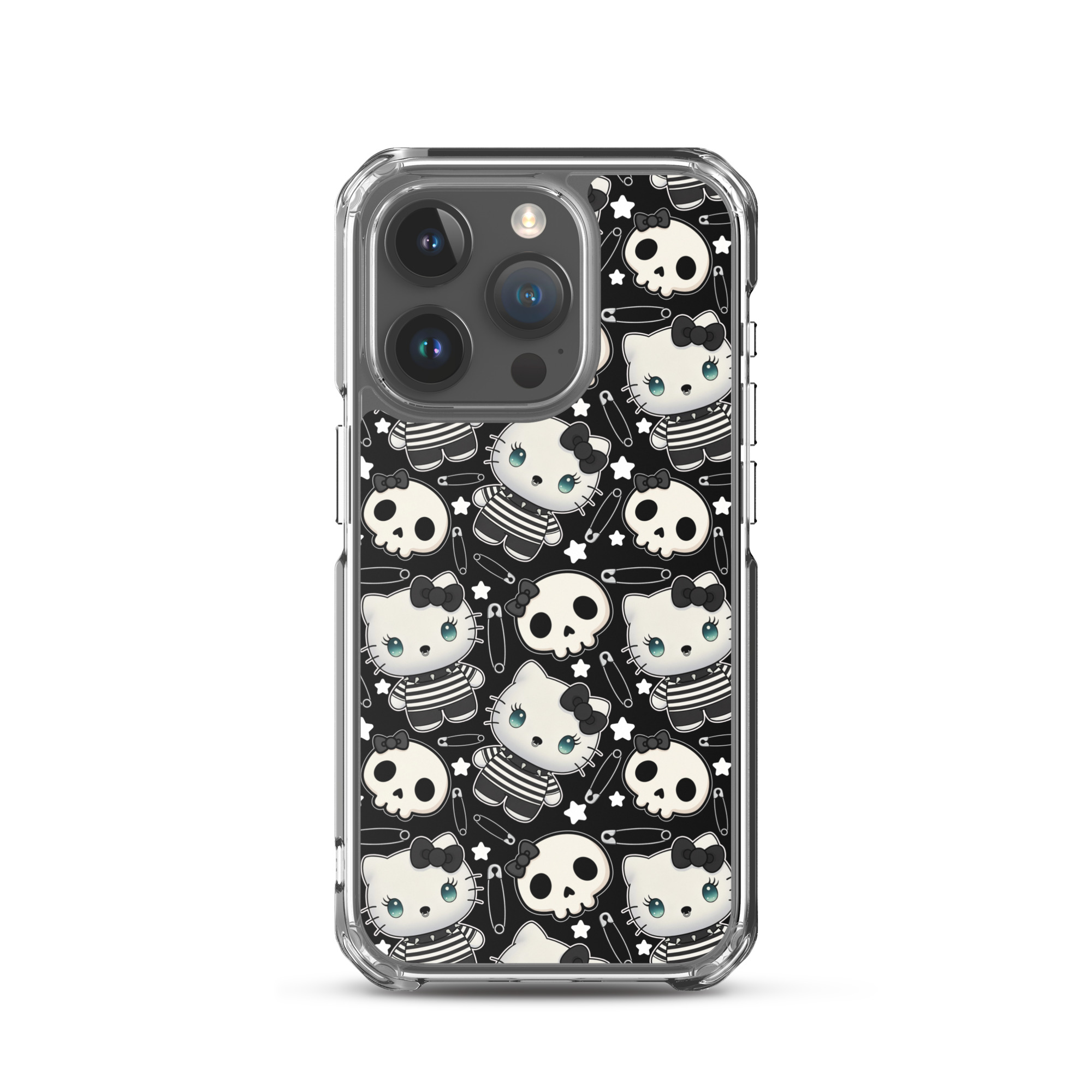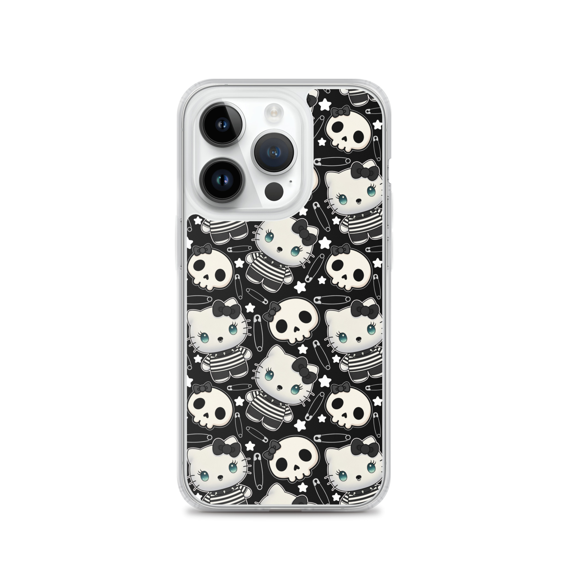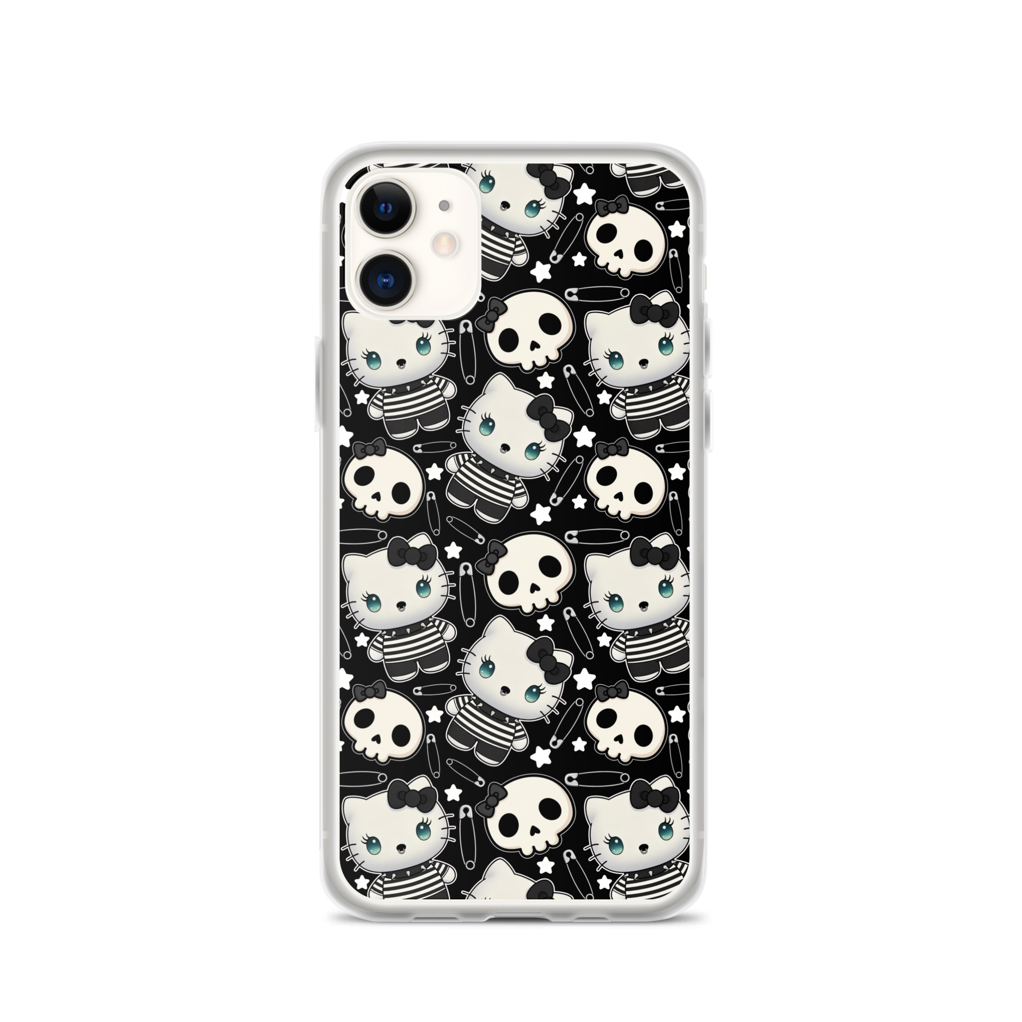 Mobilskal som passar iPhone-modellerna med söta emo-katter, säkerhetsnålar och döskallar som dekoration. Tillverkad i hög kvalitet och skyddar baksidan och sidorna på din telefon mot repor, smuts, olja och damm. Skalet är väldigt slitstarkt på grund av dubbla lager material.
