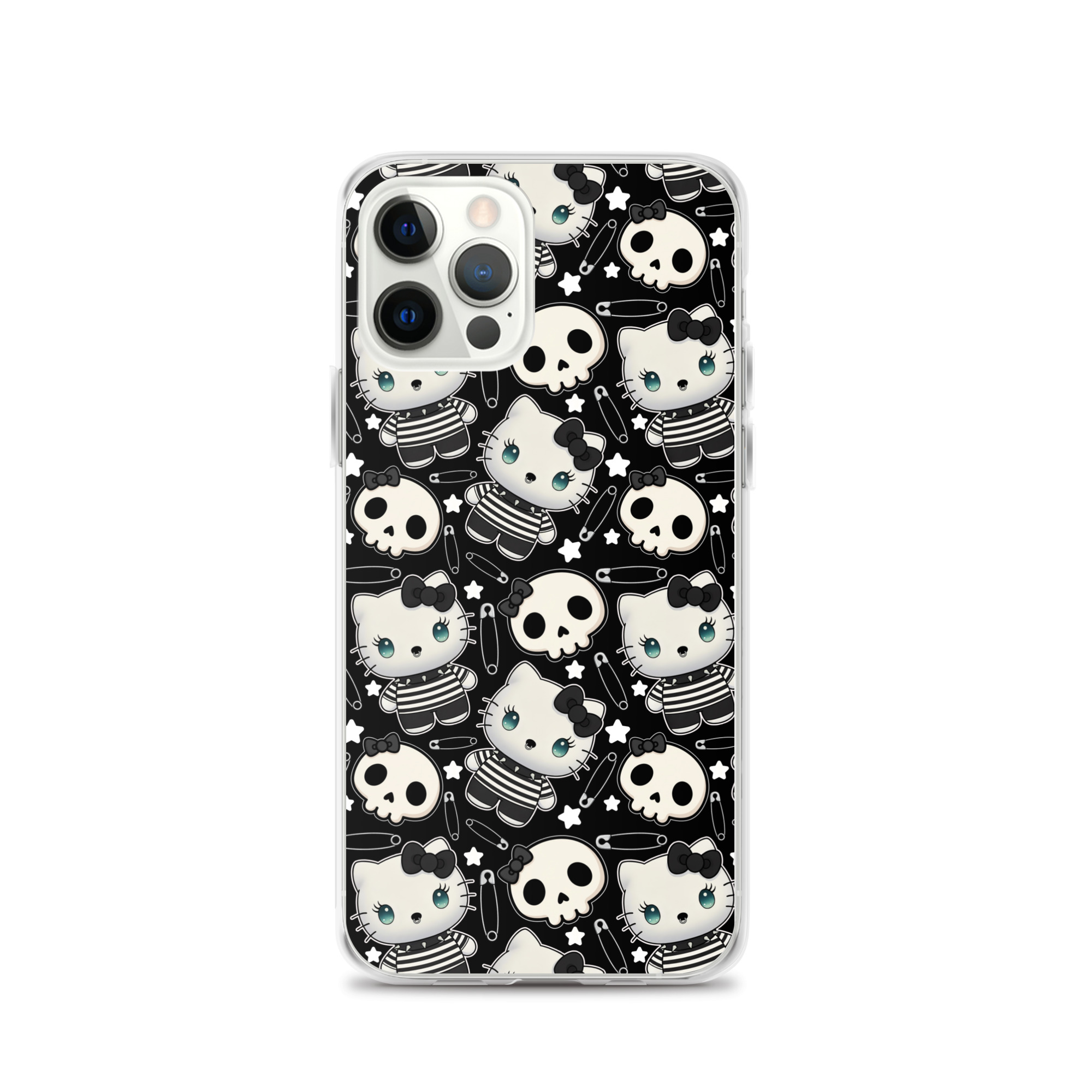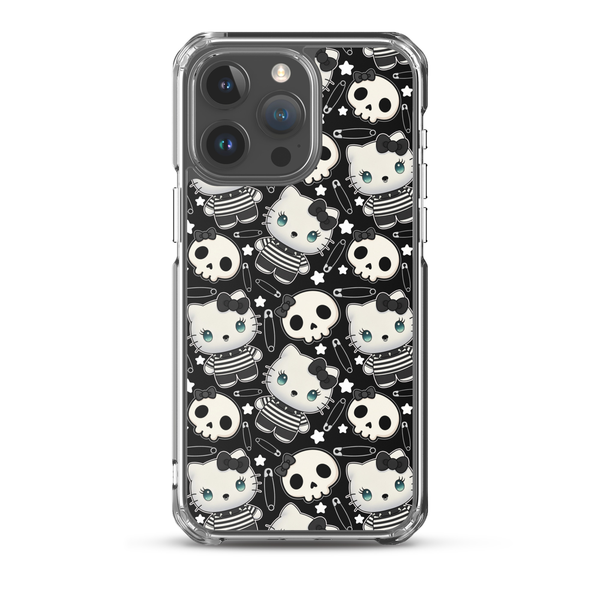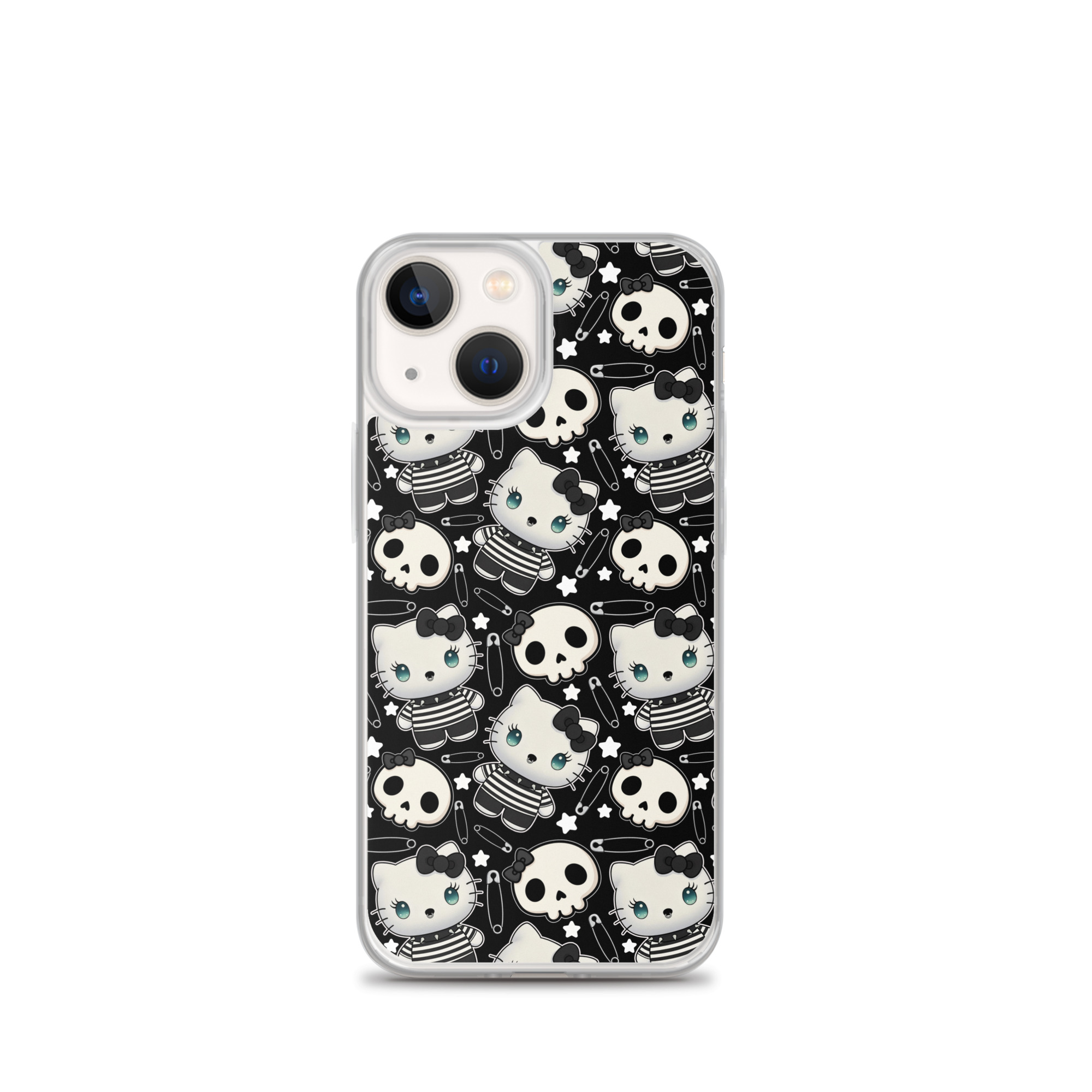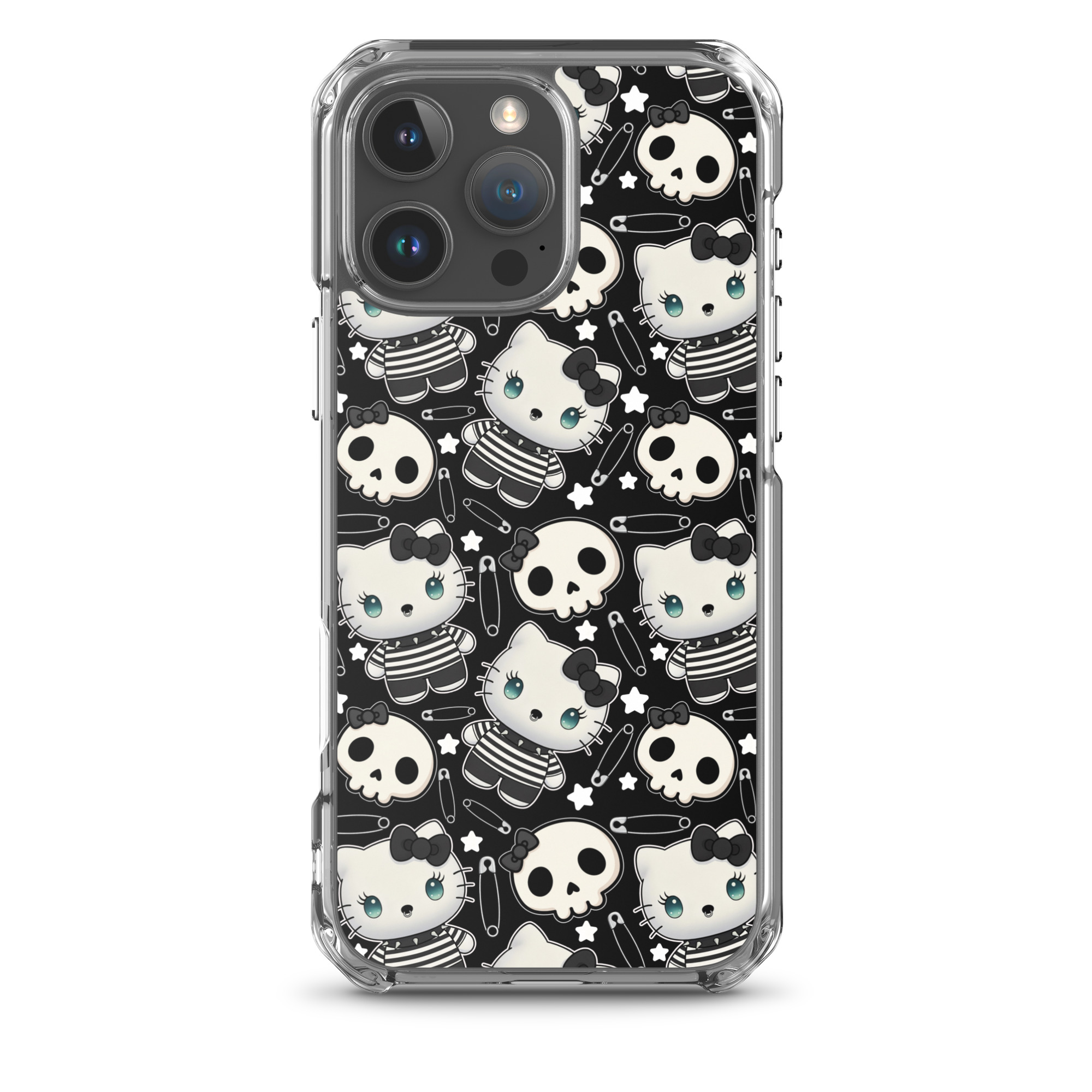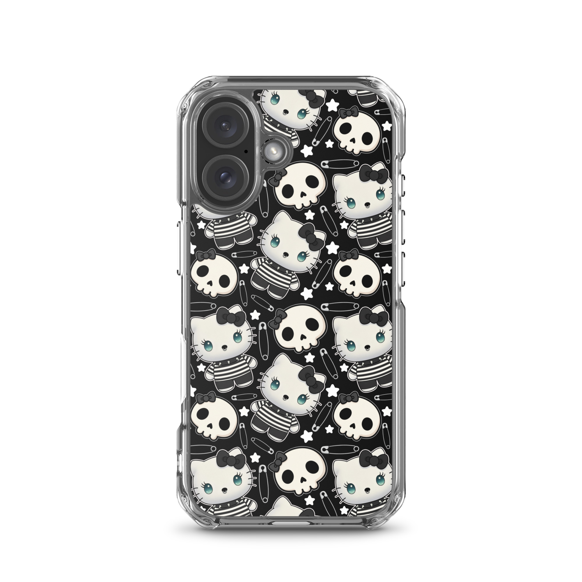 Mobilskal som passar iPhone-modellerna med söta emo-katter, säkerhetsnålar och döskallar som dekoration. Tillverkad i hög kvalitet och skyddar baksidan och sidorna på din telefon mot repor, smuts, olja och damm. Skalet är väldigt slitstarkt på grund av dubbla lager material.