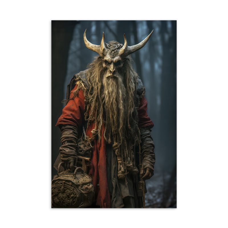 Julkort med den onda Krampus som tryck. Skicka julkortet på posten, sätt fast det på ett paket eller rama in det så får du en mindre jultavla. Höjden är 15,2 cm och materialet är kraftigt papper.