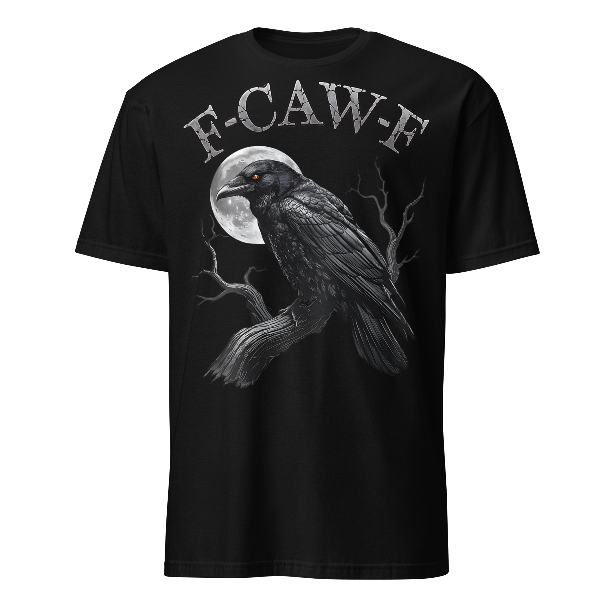 T-shirt i svart med en stor korp och texten ’F-CAW-F’ som dekoration på framsidan. Passar perfekt till både män och kvinnor, materialet är mjuk bomull.