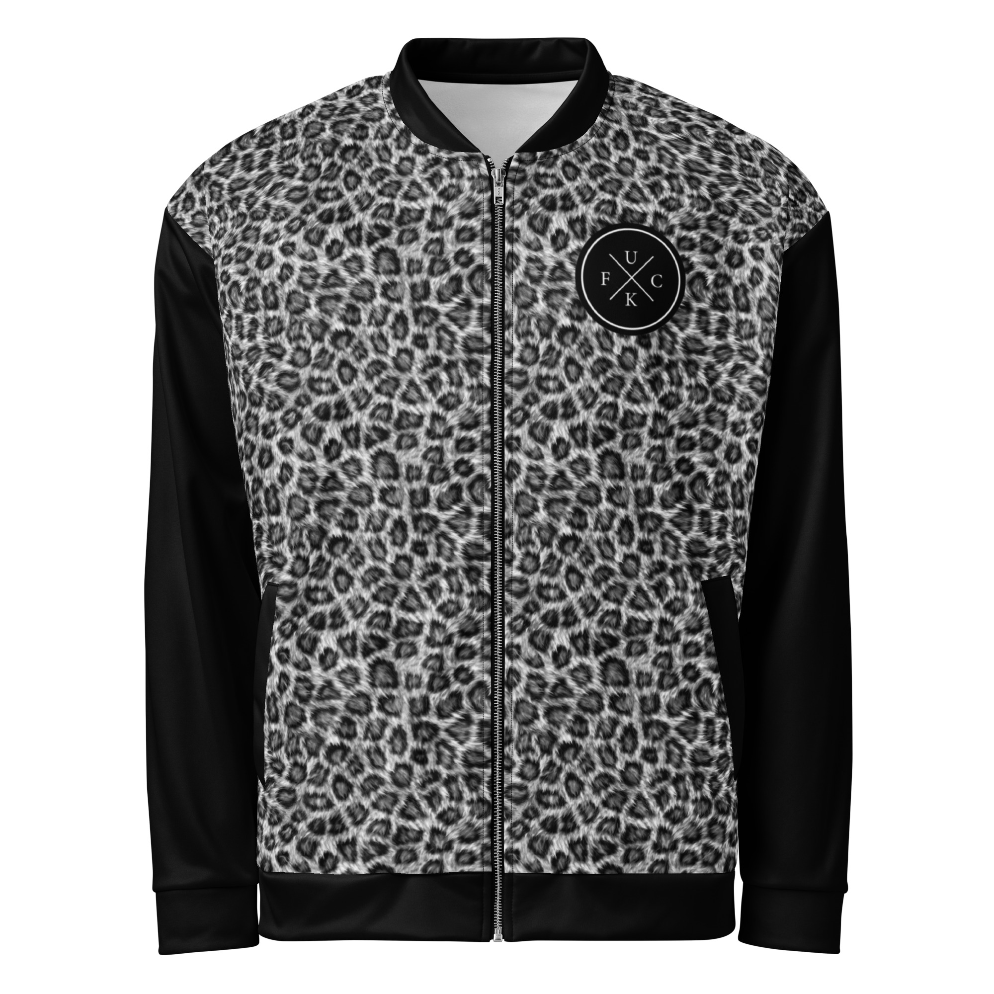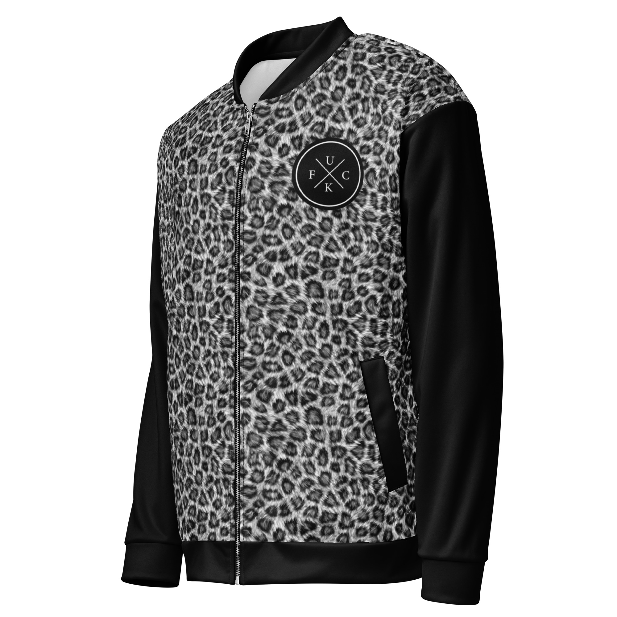 Snygg bomberjacka med grått leopardmönster och budskapet ’Fuck’ som tryck på ena bröstet. Tillverkad i 100% polyester i en fin kvalitet. Jackan har fickor på sidorna och passar perfekt till både kvinnor och män. Kommer verkligen dra blickarna till sig – riktigt snygg modell!