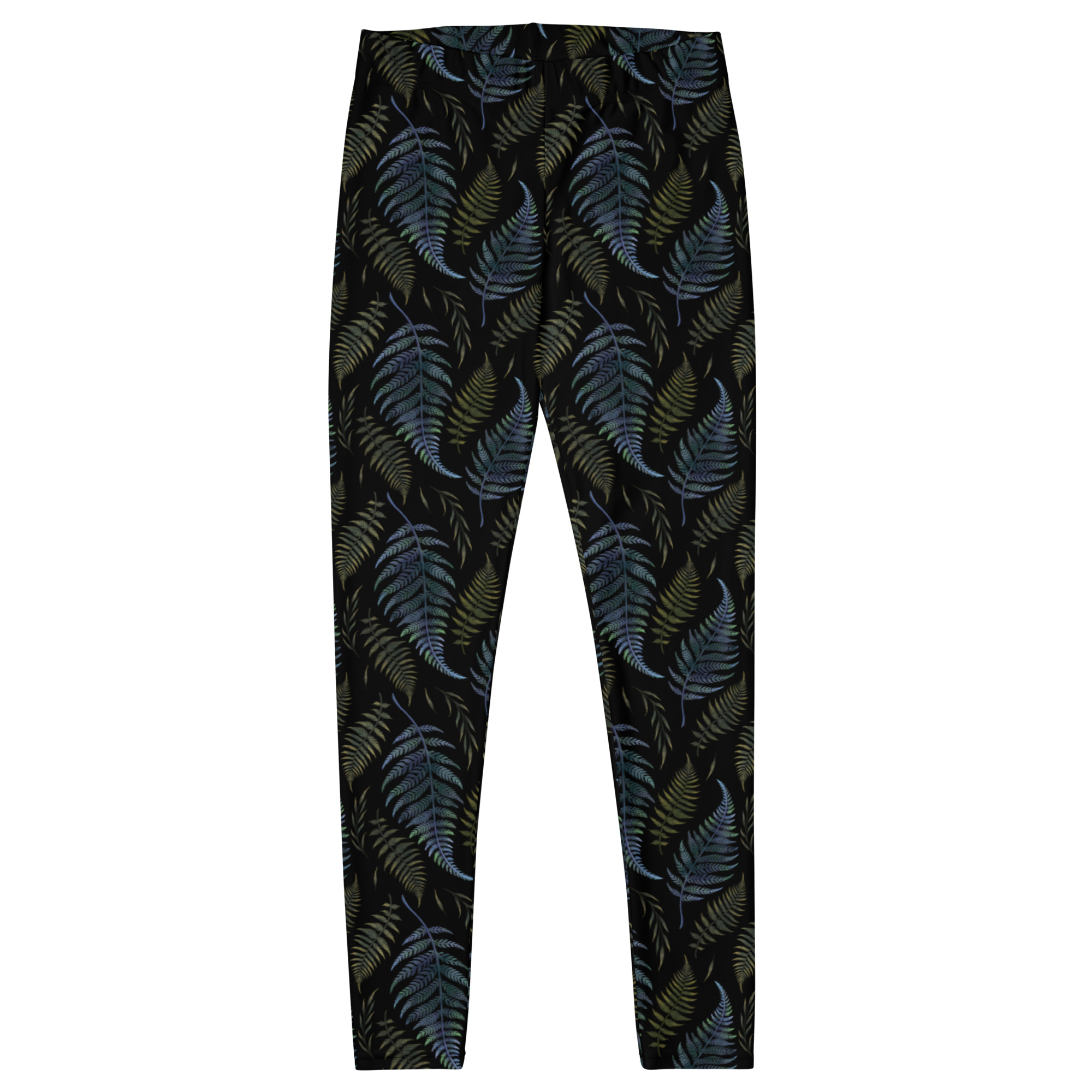 Sköna leggings med ormbunksblad som dekoration på både fram- och baksidan. Tillverkade i en stretchig blandning av polyester och spandex som aldrig tappar sina elastiska egenskaper. Det mjuka materialet mikrofiber och det elastiska bandet i midjan gör att de omsluter kroppen perfekt. Dessa leggings tryck och sys sedan ihop exklusivt för hand och skickas till dig direkt från leverantören.