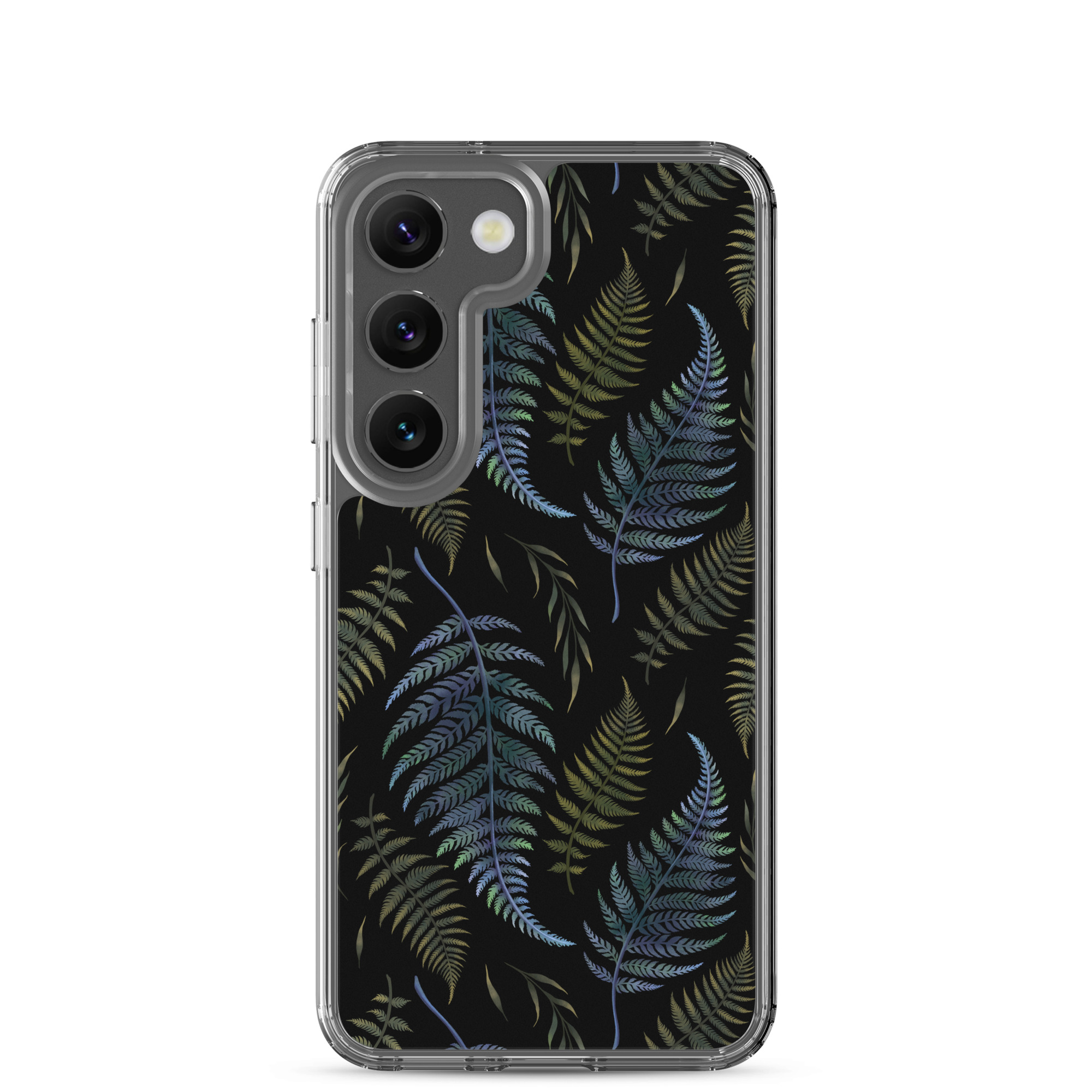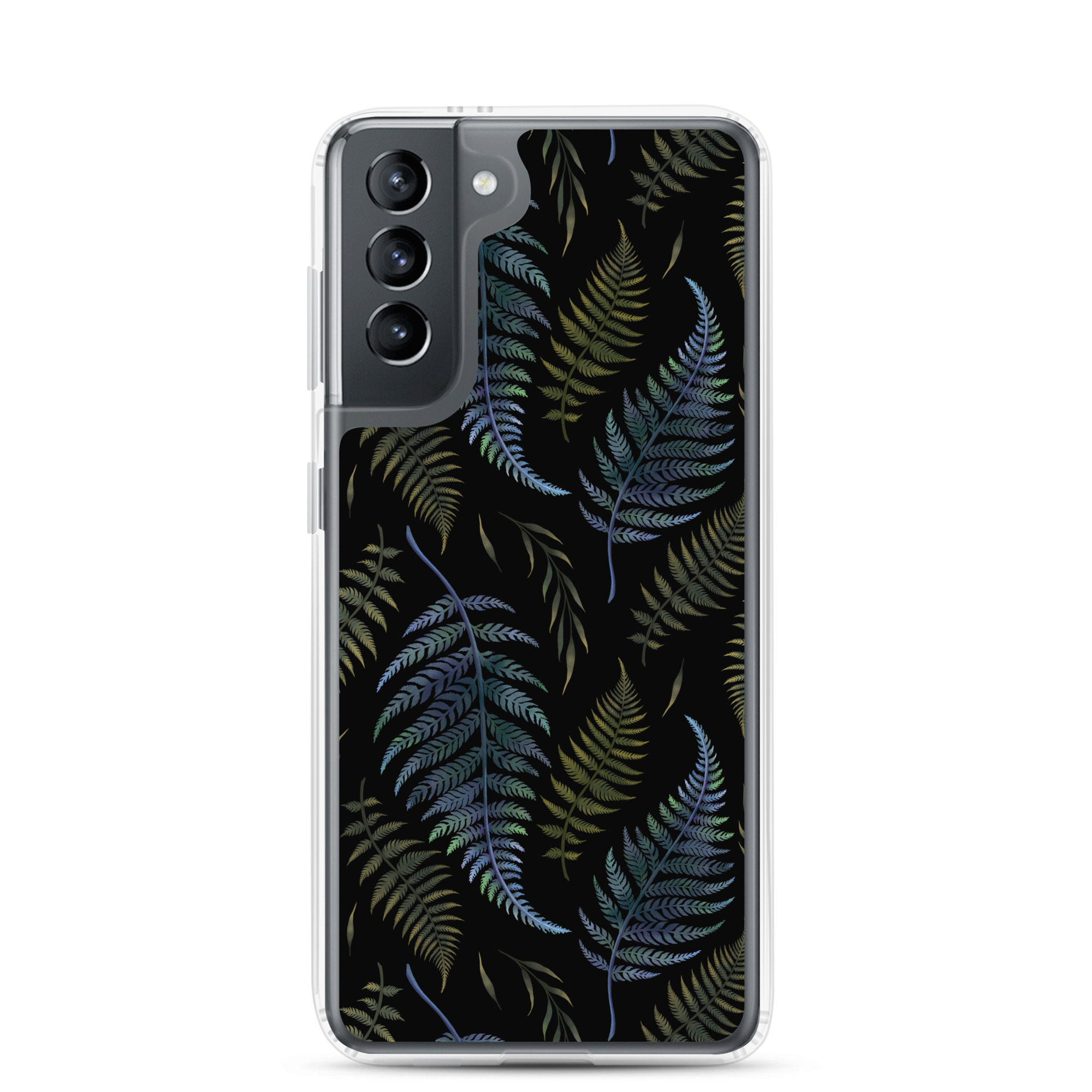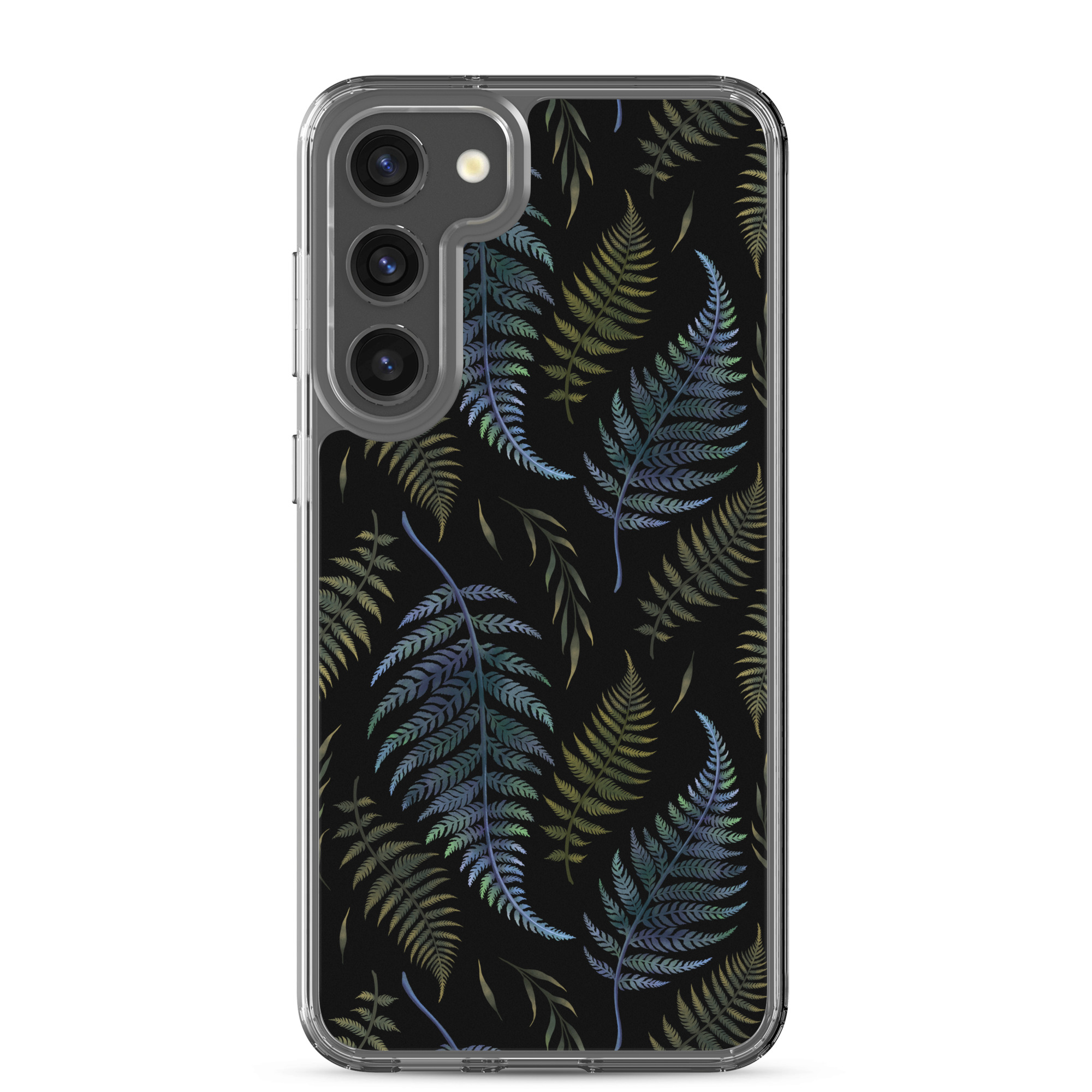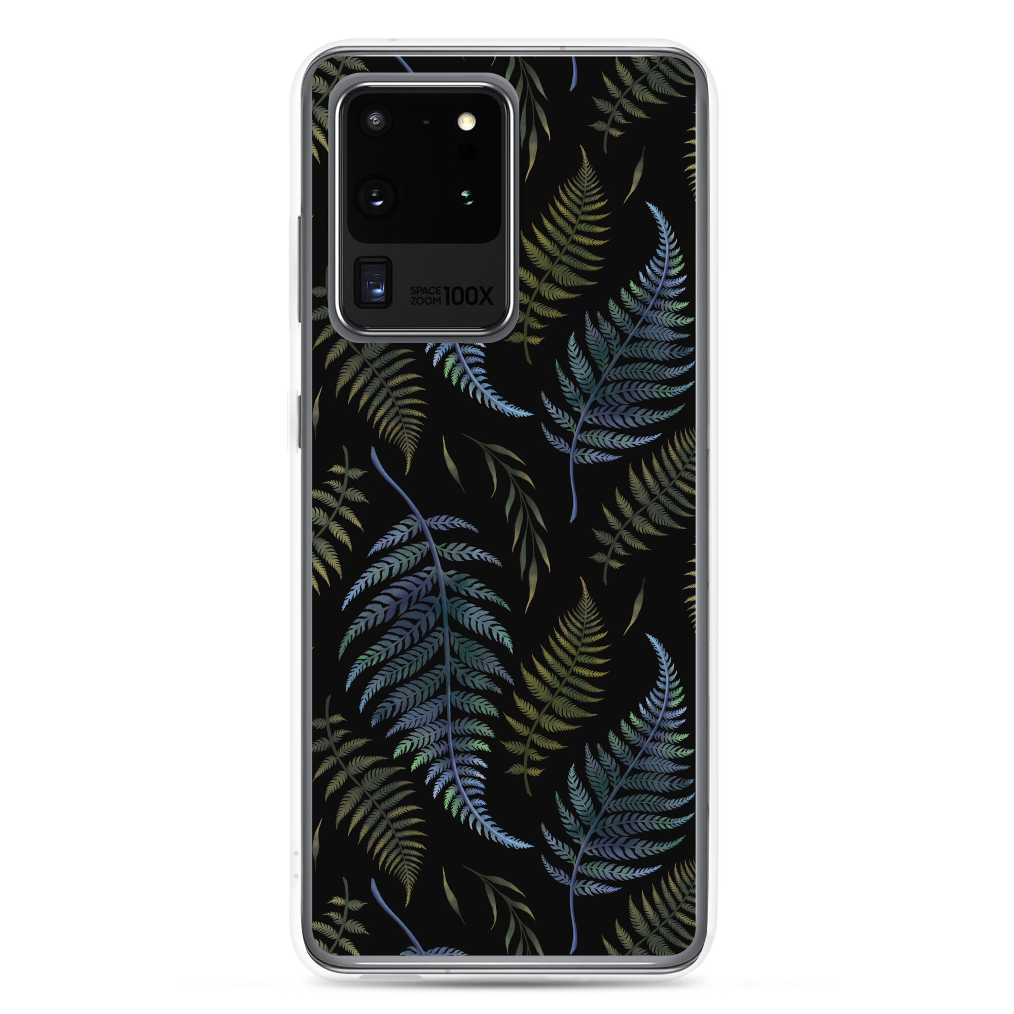 Mobilskal som passar Samsung med detaljrika ormbunksblad som dekoration. Tillverkad i hög kvalitet och skyddar baksidan och sidorna på din telefon mot repor, smuts, olja och damm. Sidorna är genomskinliga och har färdiga hål för laddning, volym, hörlurar och på/avstängning. Skalet är väldigt slitstarkt och enkelt att ta av telefonen på grund av det följsamma materialet runtom. Kompatibla för trådlös laddning.