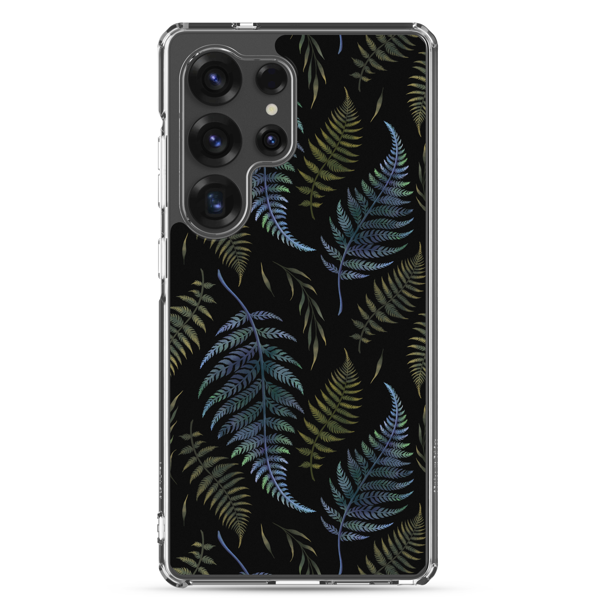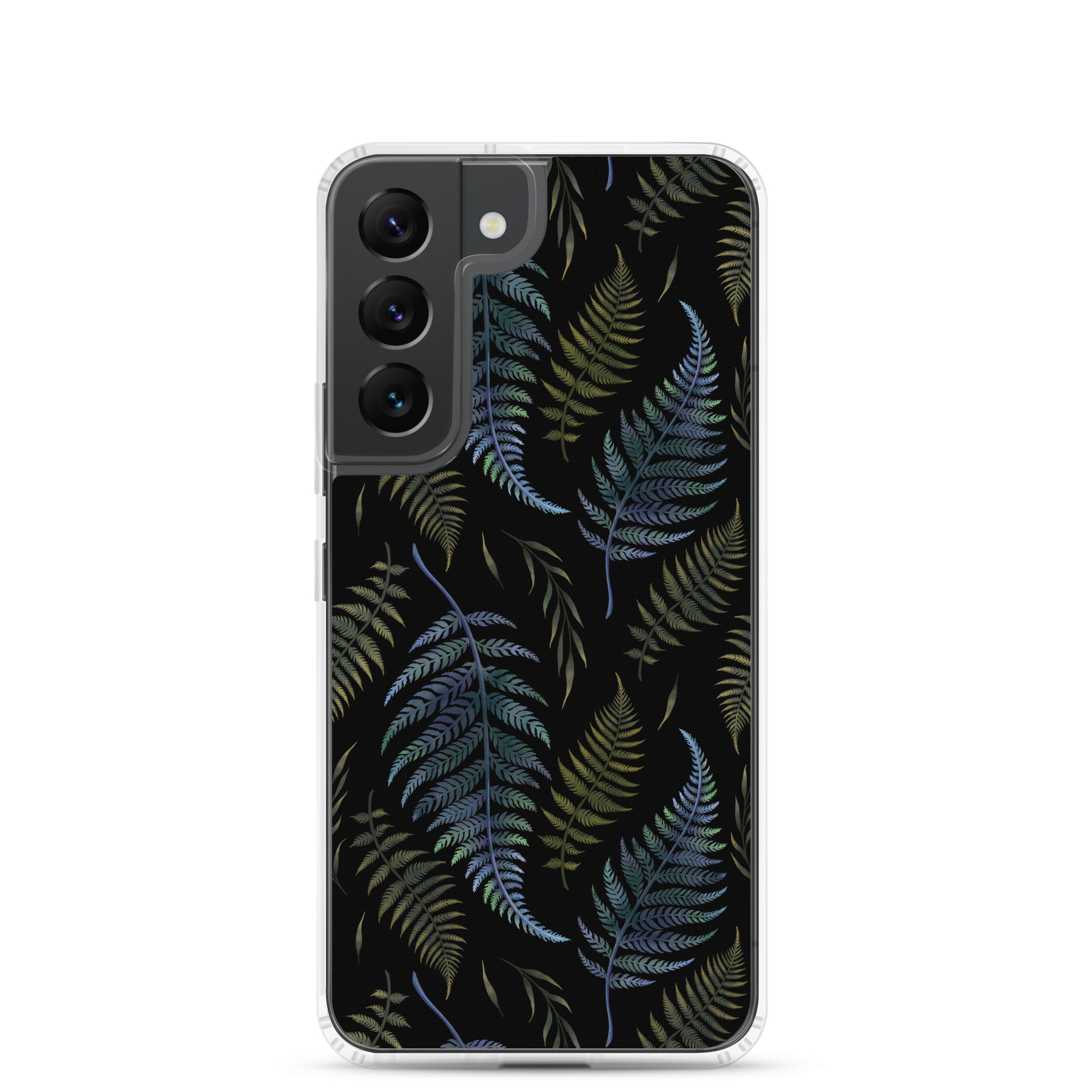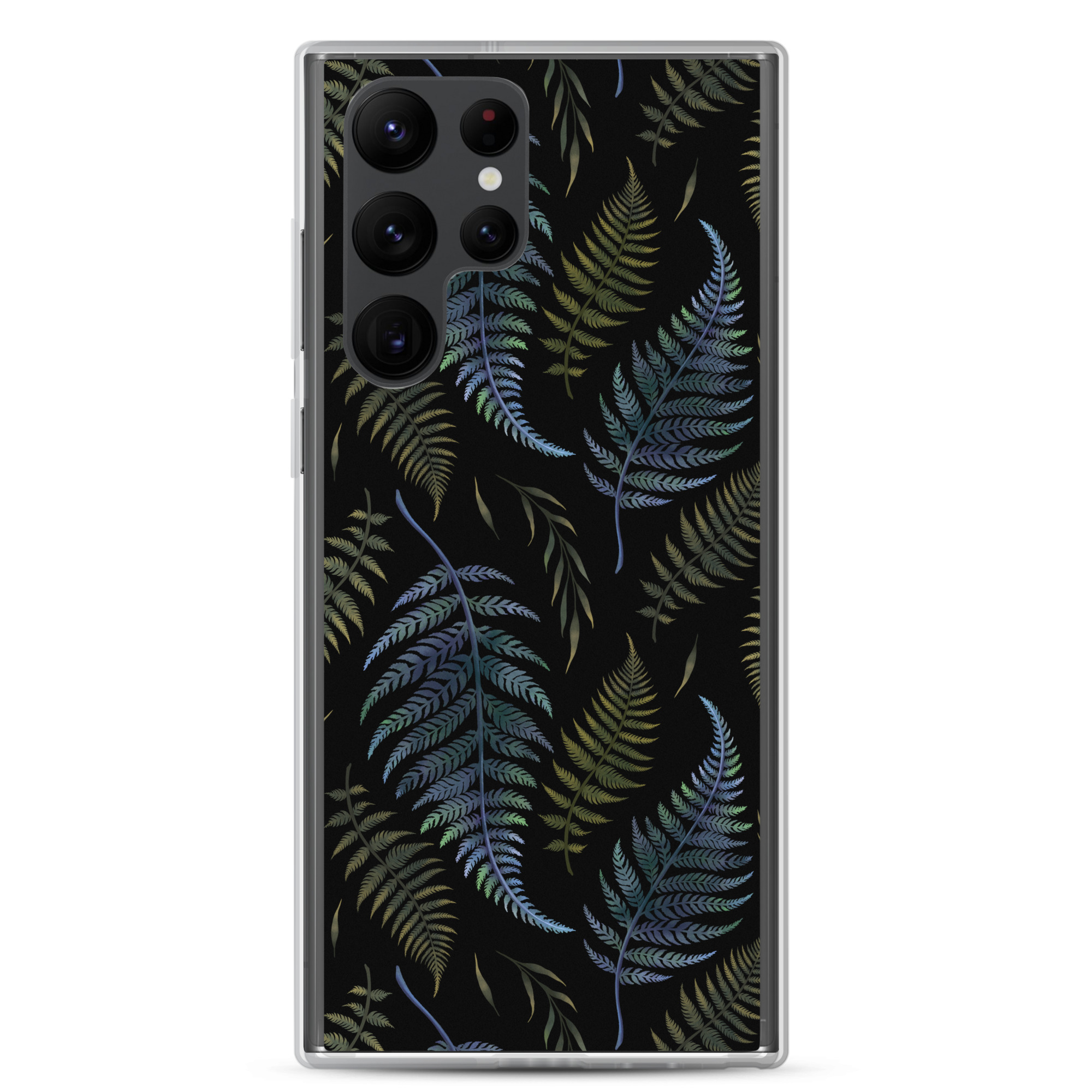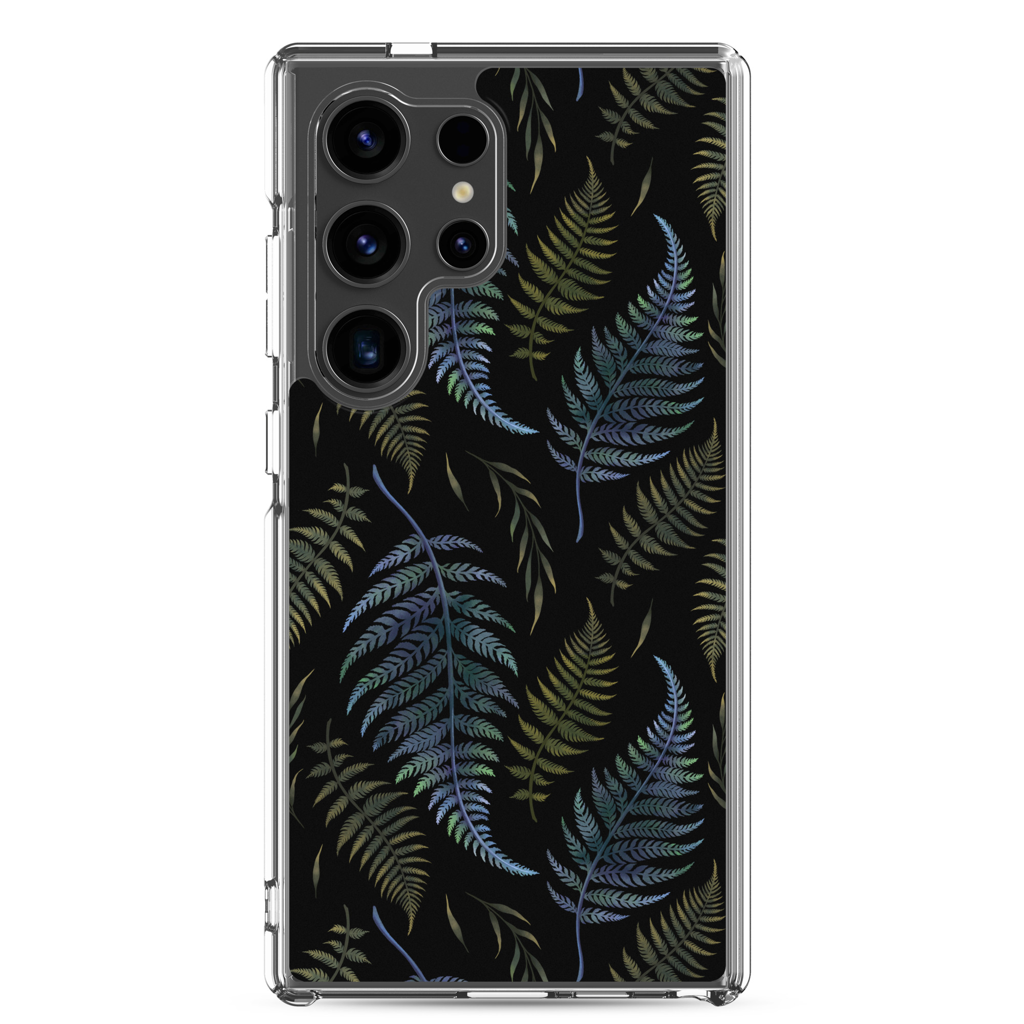 Mobilskal som passar Samsung med detaljrika ormbunksblad som dekoration. Tillverkad i hög kvalitet och skyddar baksidan och sidorna på din telefon mot repor, smuts, olja och damm. Sidorna är genomskinliga och har färdiga hål för laddning, volym, hörlurar och på/avstängning. Skalet är väldigt slitstarkt och enkelt att ta av telefonen på grund av det följsamma materialet runtom. Kompatibla för trådlös laddning.