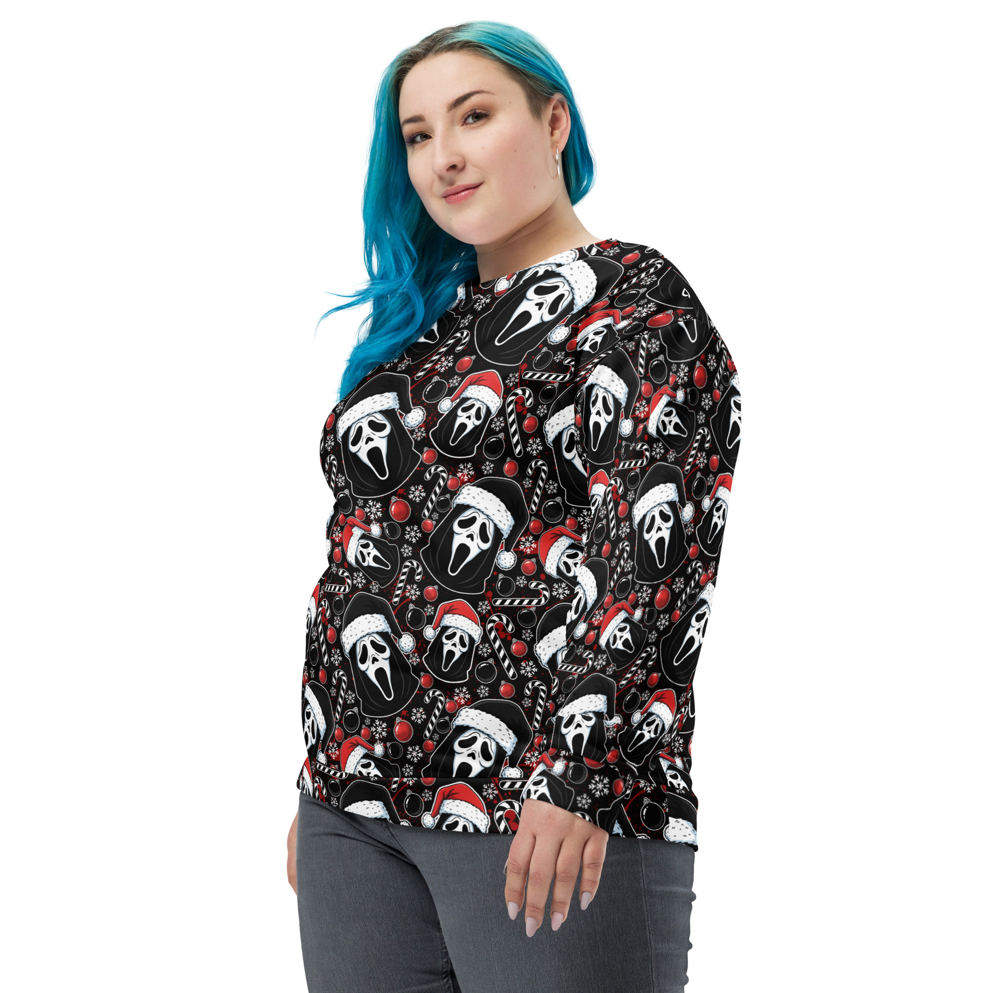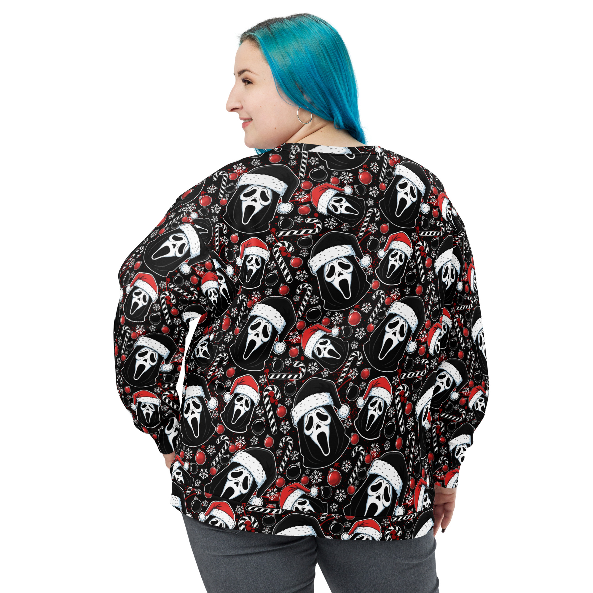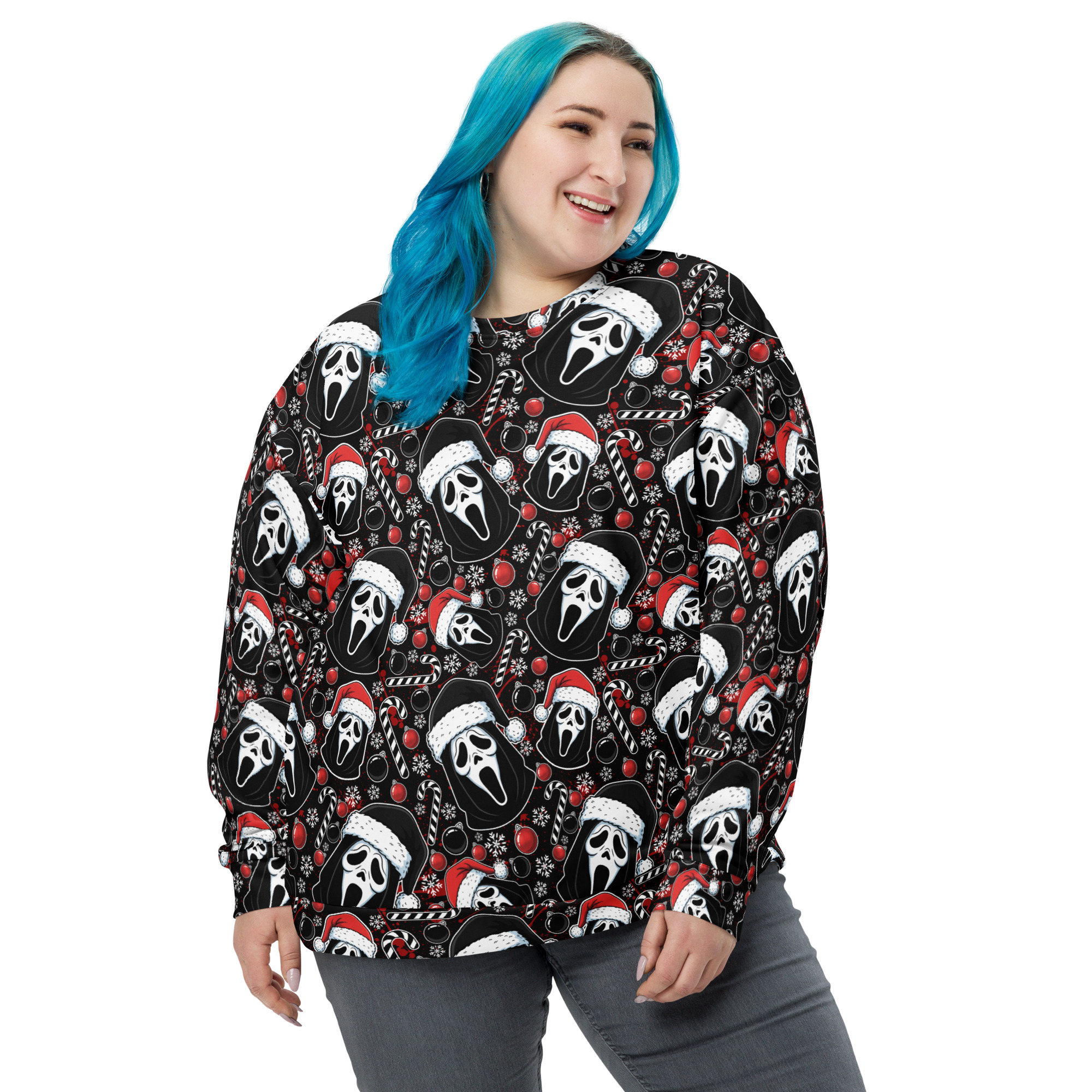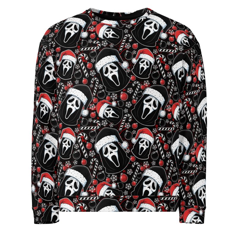 Varm och skön sweatshirt med mängder av julmotiv med Ghost face. Tillverkad i en superskön unisex-modell i blandad polyester, bomull och elastan. Tröjan har en mjuk bomullskänsla på utsidan och har varm och kammad fleece på insidan. Kommer garanterat bli din nya favorit på julen.