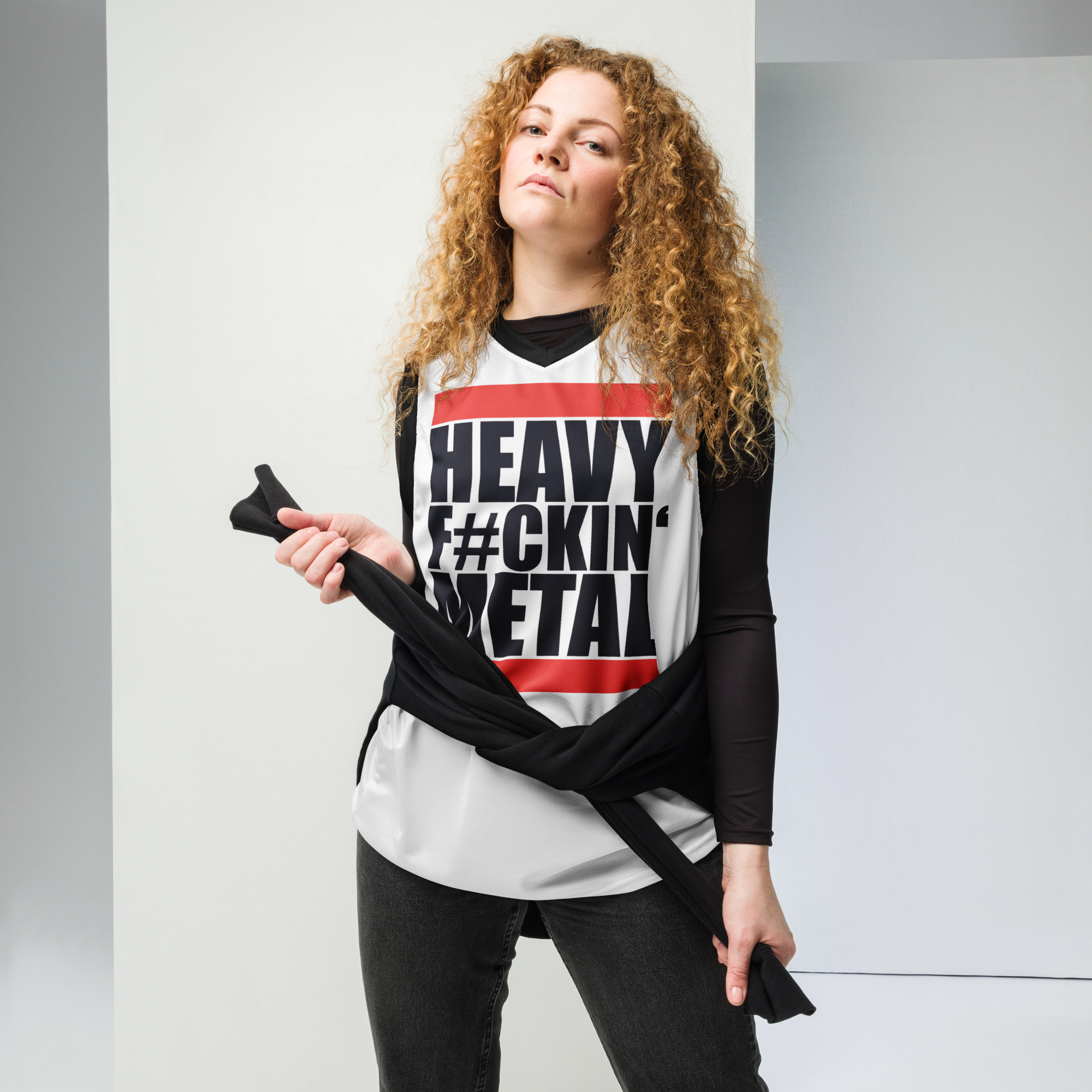 Riktigt snygg basket-jersey som passar perfekt till både män och kvinnor. På framsidan återfinns texten ’Heavy fuckin’ metal’. Tillverkad i lyxig återvunnen polyester med normal passform. Materialet är fukttrasporterande och skyddar mot solens strålar (UPF50+). Tvåvägsstretch för att följa kroppens rörelser perfekt. Passar lika bra på träningen som på stan.