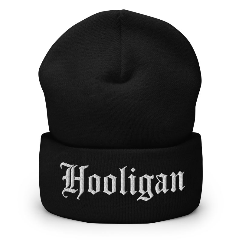 Mössa i svart med texten ’Hooligan’ broderat på framsidan. Tillverkad i ett stretchigt och allergivänligt material i turbo-akryl. Längden är 30 cm och den passar strålande till alla huliganer.