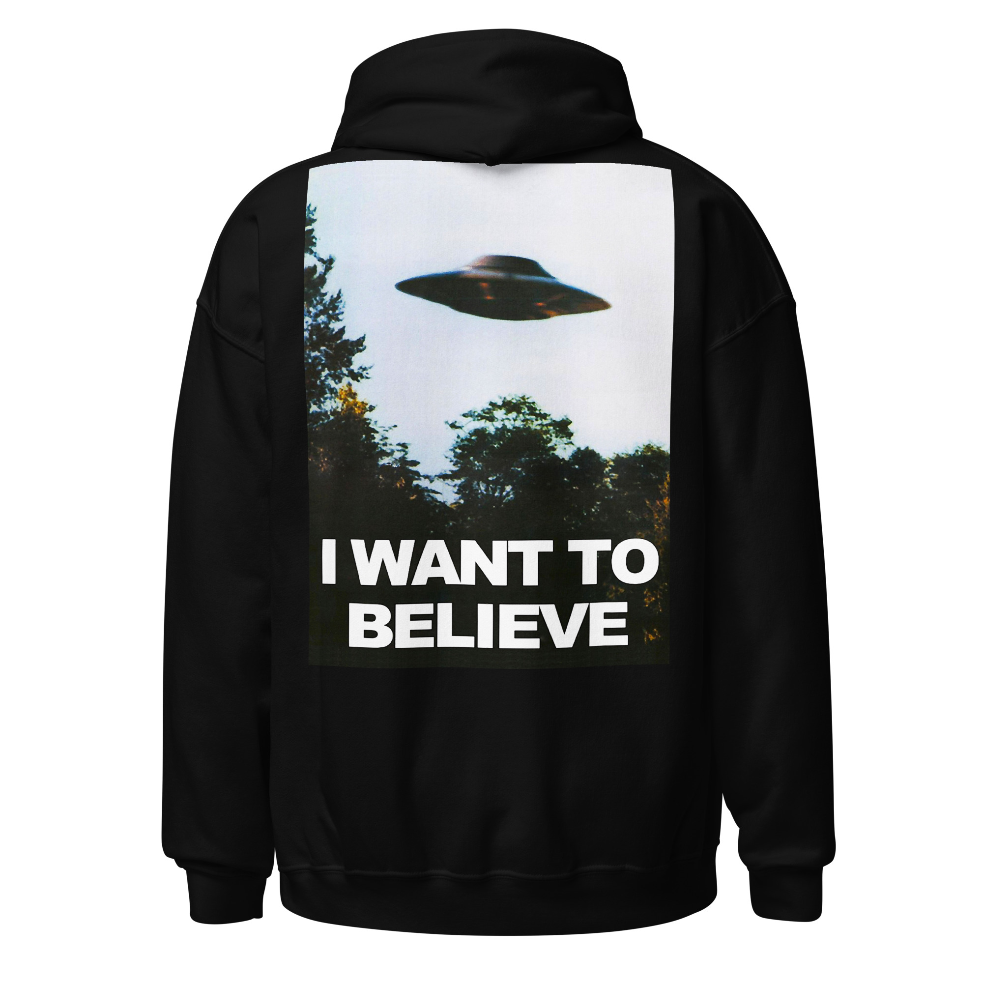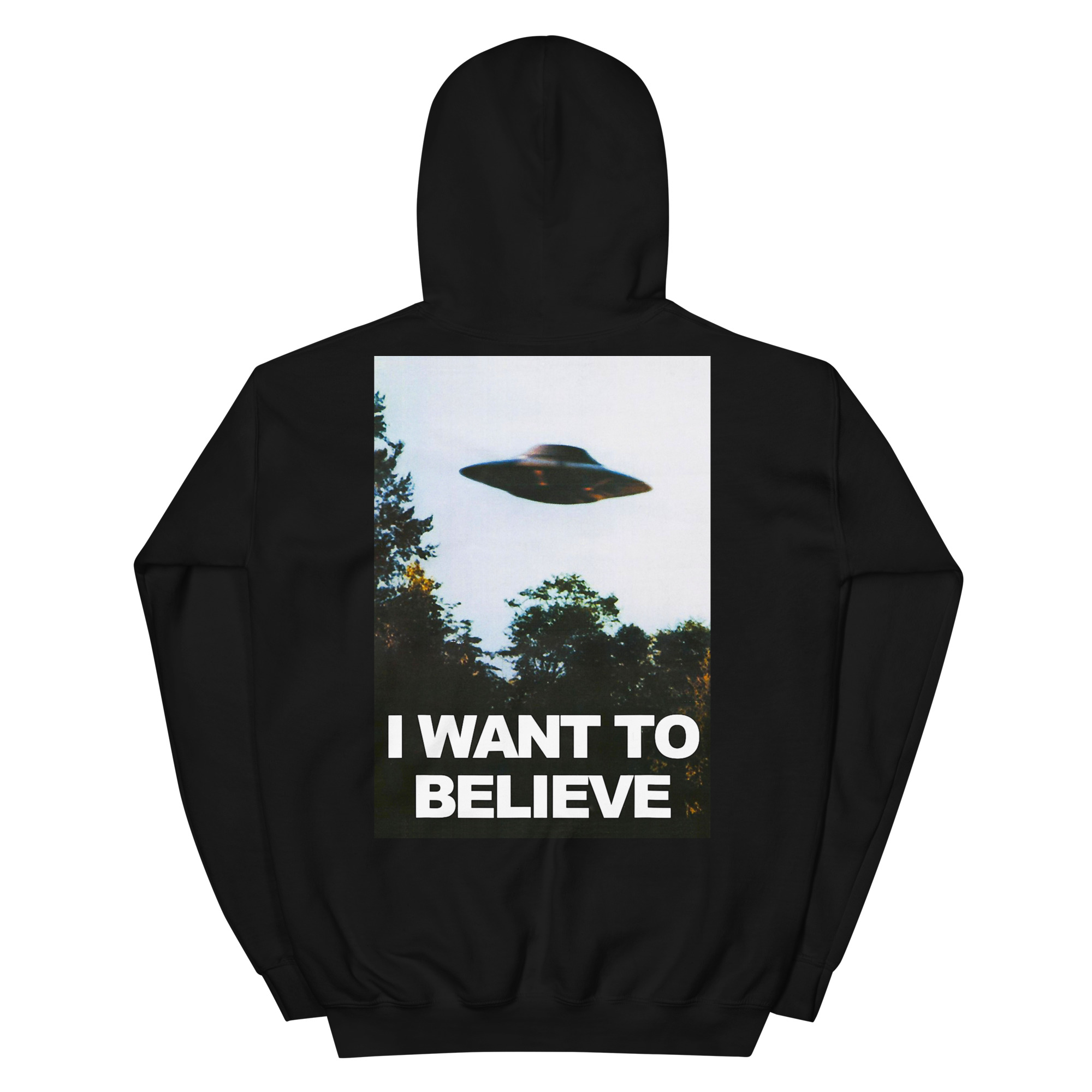Hoodie i unisex-modell tillverkad i en extra fin kvalitet i blandad bomull och polyester. På baksidan återfinns ett ufo och texten ’I want to believe’ som dekoration. Hoodien håller värmen riktigt bra och har ett otroligt mjukt tyg.