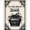 Poster till personen som fyller år med ett gotiskt motiv med en svart kista och texten ’In loving memory of your youth’ som tryck. Storleken är 21×30 cm (A4) och är tillverkad i ett kraftigt kvalitetspapper. Kommer bli en perfekt present.