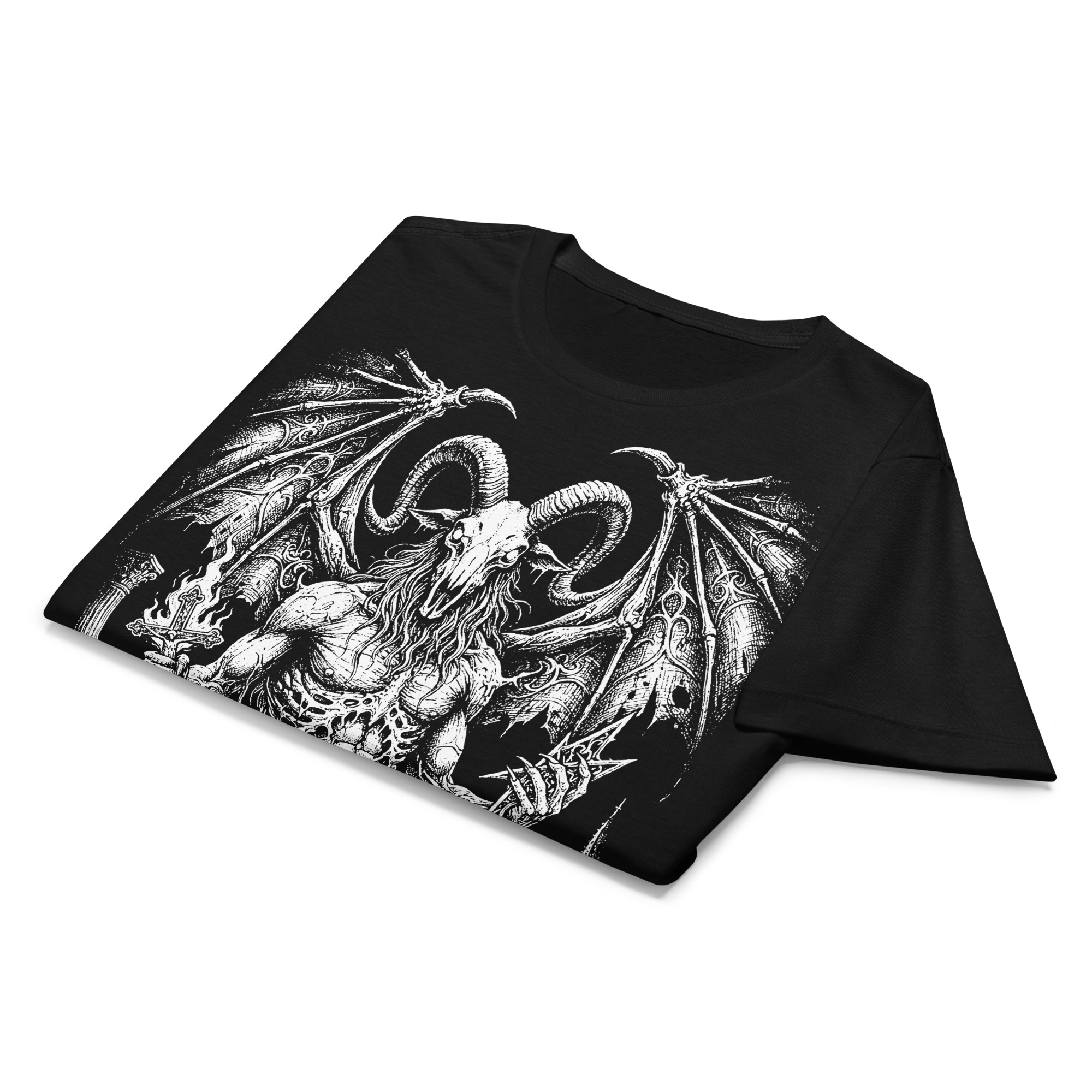 Semi-fitted t-shirt i svart med ett detaljrikt alternativ tryck med Baphomet och texten ’Horned monarch’ som dekoration på framsidan. Passar perfekt till kvinnor som älskar den alternativa klädstilen. Tröjan är tillverkad i en supermjuk kvalitet i 100% bomull.