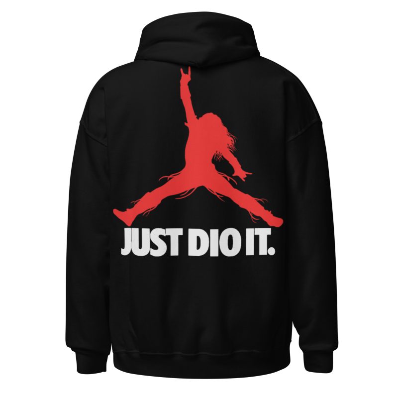 Hoodie i unisex-modell tillverkad i en extra fin kvalitet i blandad bomull och polyester. På baksidan återfinns ett stort hårdrockstryck med texten ’Just Dio it’ som dekoration. Hoodien håller värmen riktigt bra och har ett otroligt mjukt tyg.