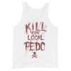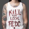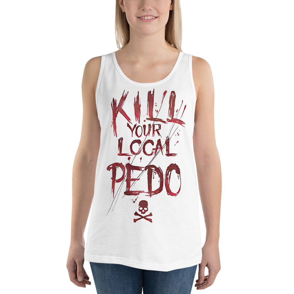 Linne i vitt med en dödskalle och texten ’Kill your local pedo’ som tryck på framsidan. Tillverkad i en skön kvalitet i 100% bomull. Passar perfekt till både män och kvinnor som HATAR pedofiler.