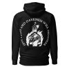 Svart hoodie i unisex-modell tillverkad i en extra fin kvalitet i blandad bomull och polyester. Baksidan är dekorerad med ett alternativt tryck med en brinnande kyrka och texten ’Give light and darkness will disappear’. Hoodien håller värmen riktigt bra och har ett otroligt mjukt tyg.