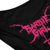 Underbar bikini-underdel dekorerad med texten ’Barbie girl’ i ett black metal-typsnitt på framsidan. Tillverkad i en mjuk och stretchig blandning av återvunnen polyester och elastan som omsluter kroppen perfekt. UPC 50+ solskyddad för att inte tappa färgen. Denna bikini-underdel trycks och sys sedan ihop för hand exklusivt efter beställning.
