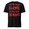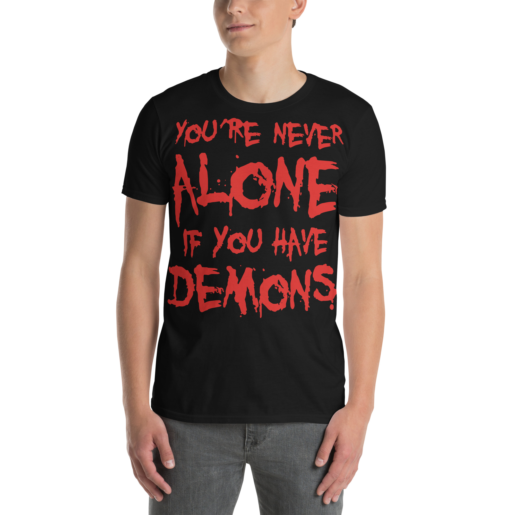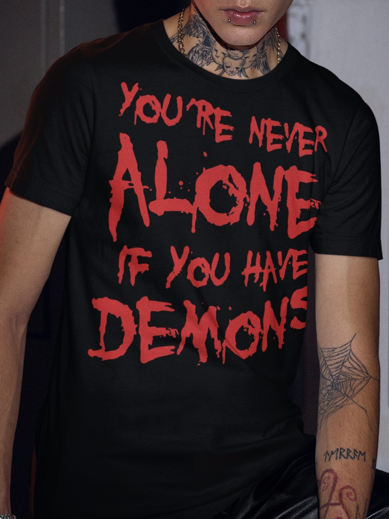 T-shirt i svart med texten ’You’re never alone if you have demons’ som dekoration på framsidan. Passar perfekt till alla som älskar den alternativa klädstilen. Tröjan är tillverkad i en supermjuk kvalitet i 100% bomull.