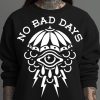 Varm och skön sweatshirt i svart tillverkad i blandad bomull/polyester med ett tatueringsmotiv med ett öga, ett paraply och texten ’No bad days’ som dekoration på framsidan. Unisex-modell som passar perfekt till både män och kvinnor som älskar den alternativa stilen.