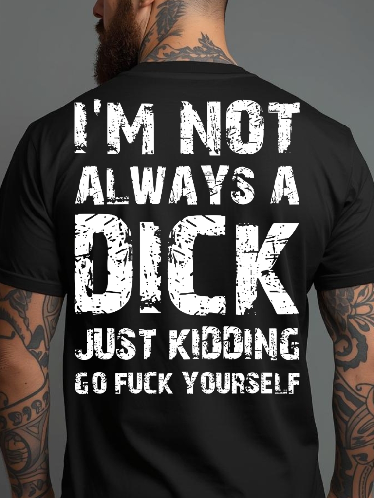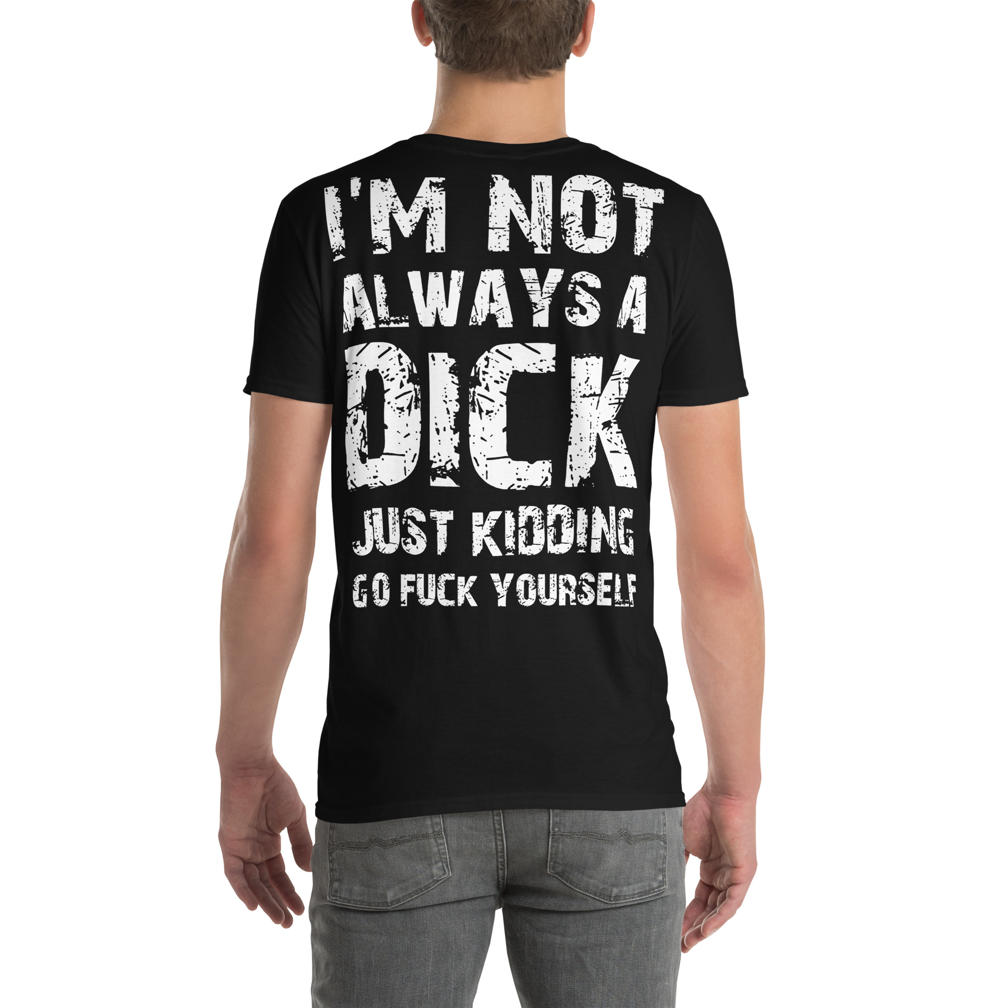 T-shirt i svart med texten ’I’m not always a dick, just kidding, go fuck yourself’ som dekoration på baksidan. Passar perfekt till kvinnor och män som älskar alternativa kläder. Tröjan är tillverkad i en supermjuk kvalitet i 100% bomull.