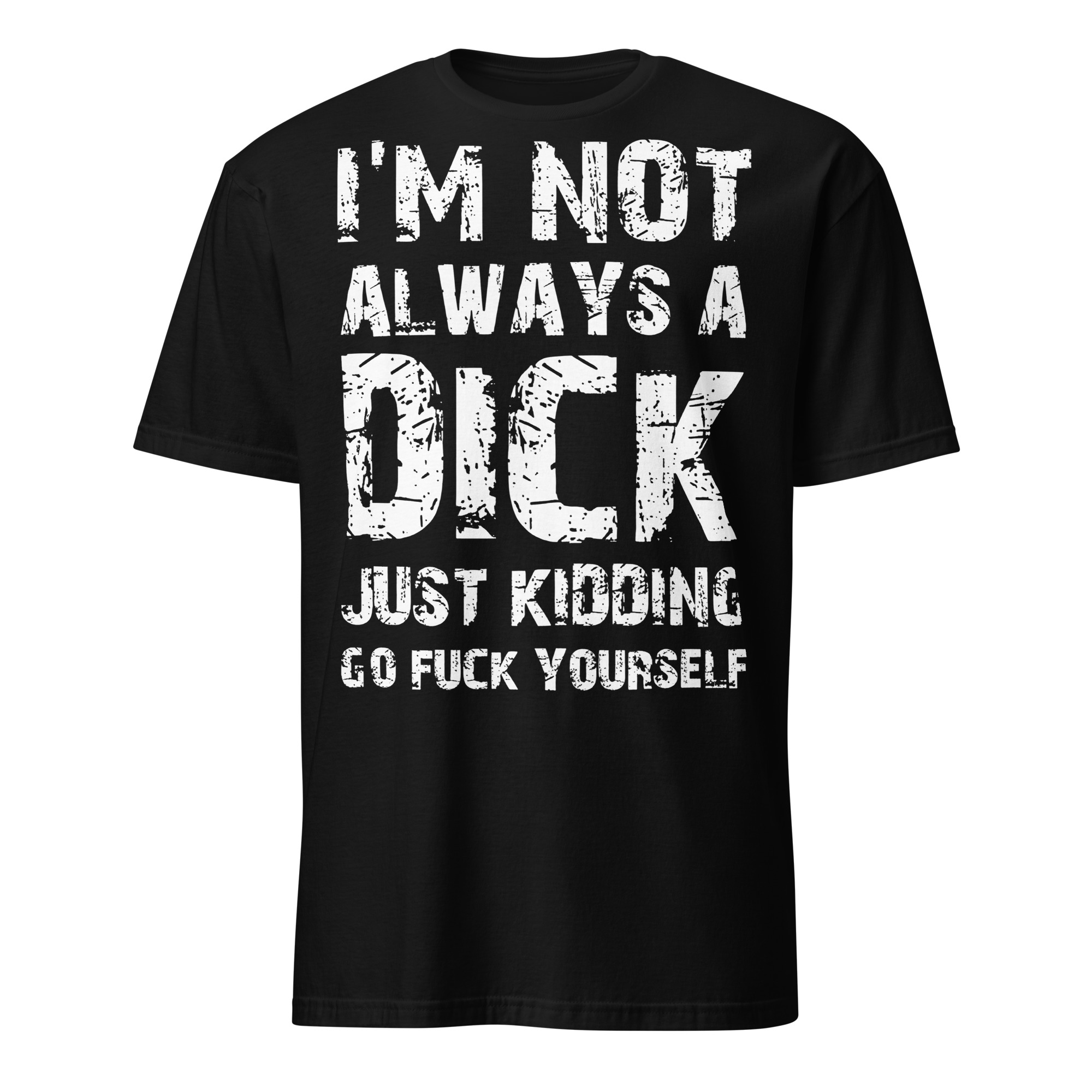 T-shirt i svart med texten ’I’m not always a dick, just kidding, go fuck yourself’ som dekoration på framsidan. Passar perfekt till kvinnor och män som älskar alternativa kläder. Tröjan är tillverkad i en supermjuk kvalitet i 100% bomull.