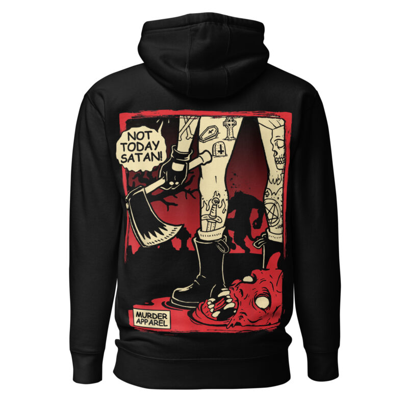 Hoodie tillverkad i en extra fin kvalitet i blandad bomull och polyester. På ryggen finns ett alternativt tryck med texten ’Not today Satan’ som dekoration. Hoodien håller värmen riktigt bra och har ett otroligt mjukt tyg. Passar både män och kvinnor.