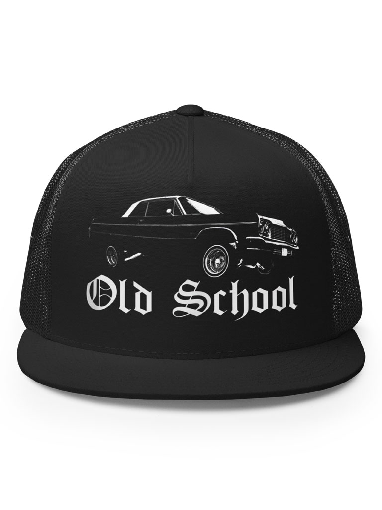 Snygg och stilren keps i trucker-modell med rak skärm och en äldre bil och texten ’Old school’ tryckt på framsidan. En storlek som passar de flesta, justeras på baksidan till önskad storlek.