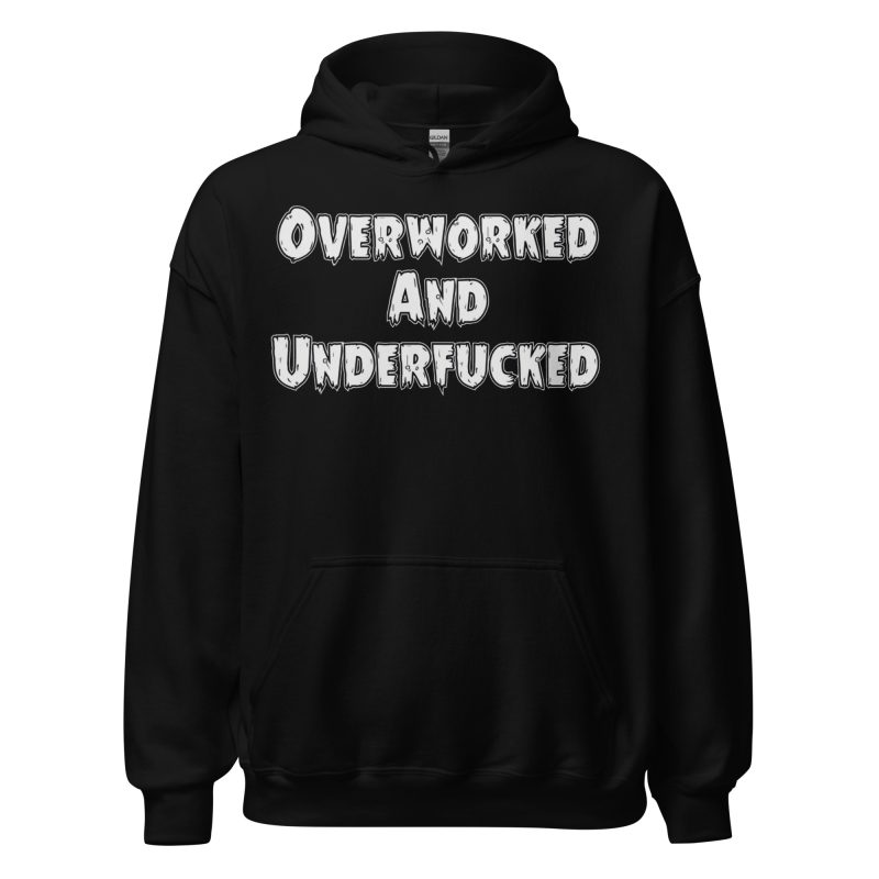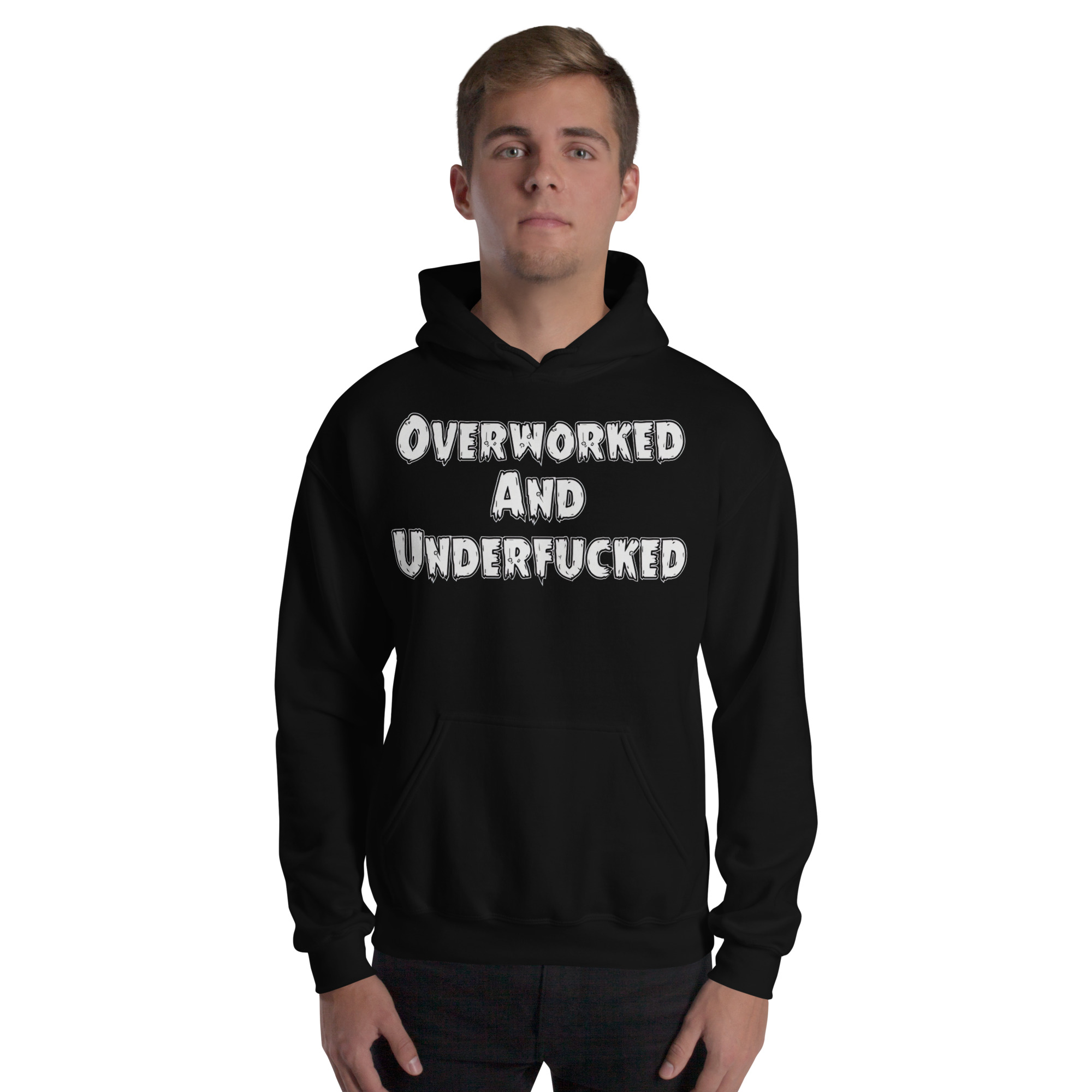 Hoodie i unisex-modell tillverkad i en extra fin kvalitet i blandad bomull och polyester. På framsidan återfinns texten ’Overworked and underfucked’ som dekoration. Hoodien håller värmen riktigt bra och har ett otroligt mjukt tyg.