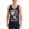 Linne i svart med en dödskalle med keps och texten ’Posers must die’ som tryck på framsidan. Tillverkad i en skön kvalitet i 100% bomull och passar både män och kvinnor.