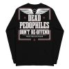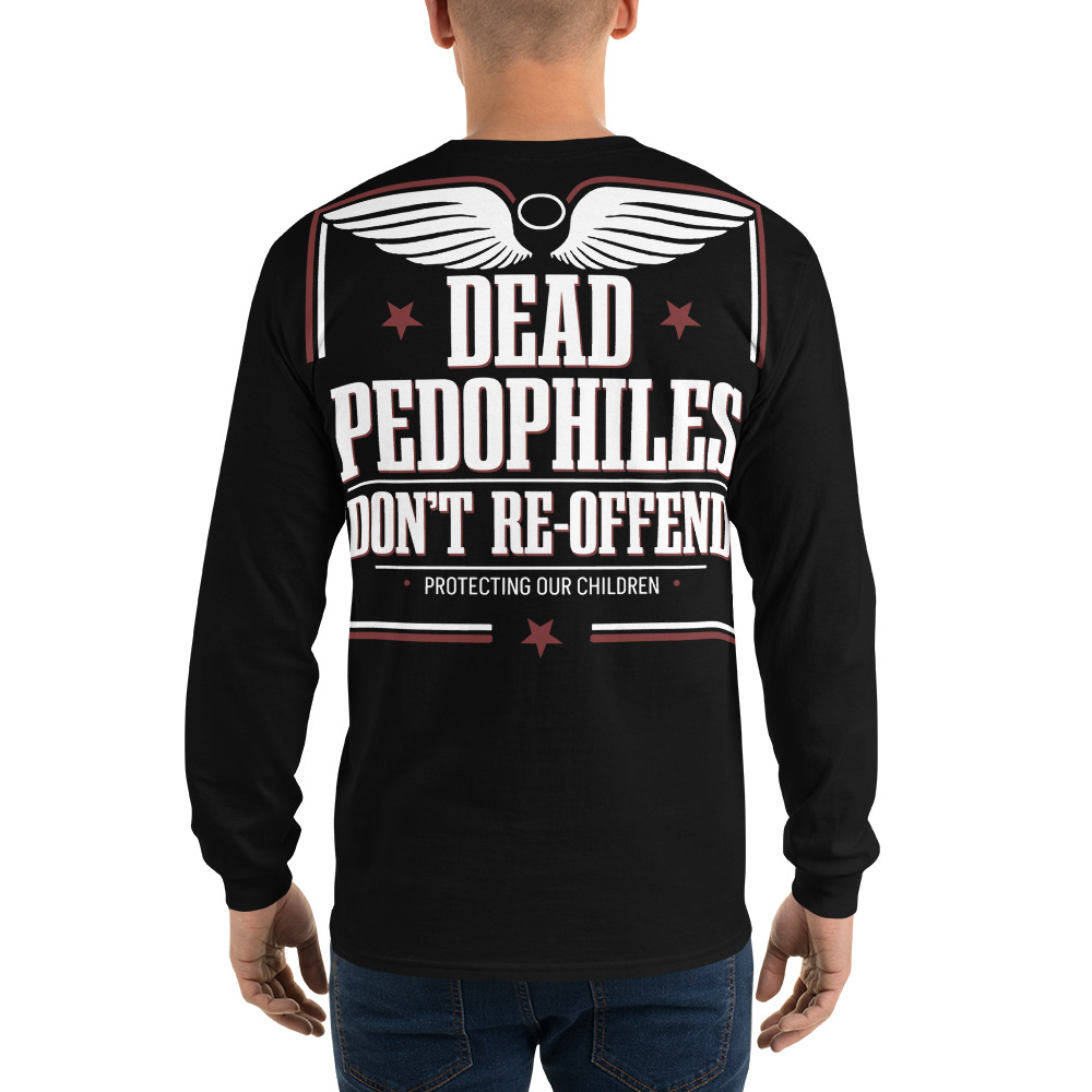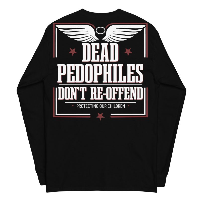Långärmad tröja i en tunnare skön kvalitet med ett stort tryck texten ’Dead pedophiles don’t re-offend’ som dekoration på ryggen. Tillverkad i 100% bomull och passar alla män och kvinnor som älskar alternativa kläder.