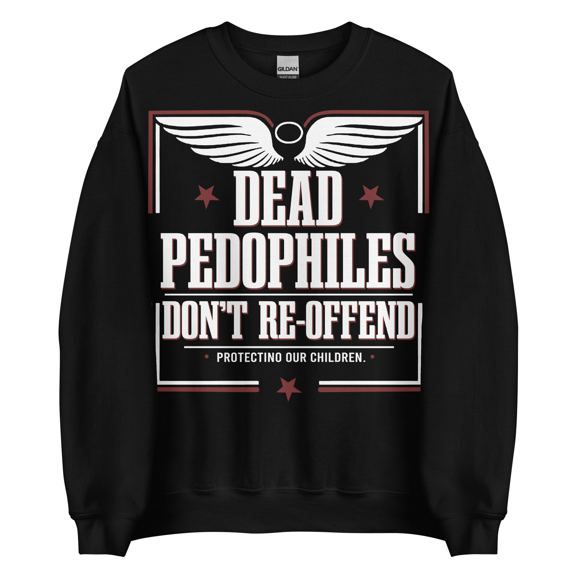 Varm och skön sweatshirt i svart tillverkad i blandad bomull/polyester med texten ’Dead pedophiles don’t re-offend’ som dekoration på framsidan. Tröjan passar perfekt till både män och kvinnor som älskar den alternativa klädstilen.