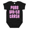 Riktigt söt body i svart med texten ’Pure white trash’ i rosa som dekoration på framsidan. Materialet är 100% ringspunnen bomull i en fin kvalitet. Passar perfekt till alla bebisar med ’white trash’-föräldrar.