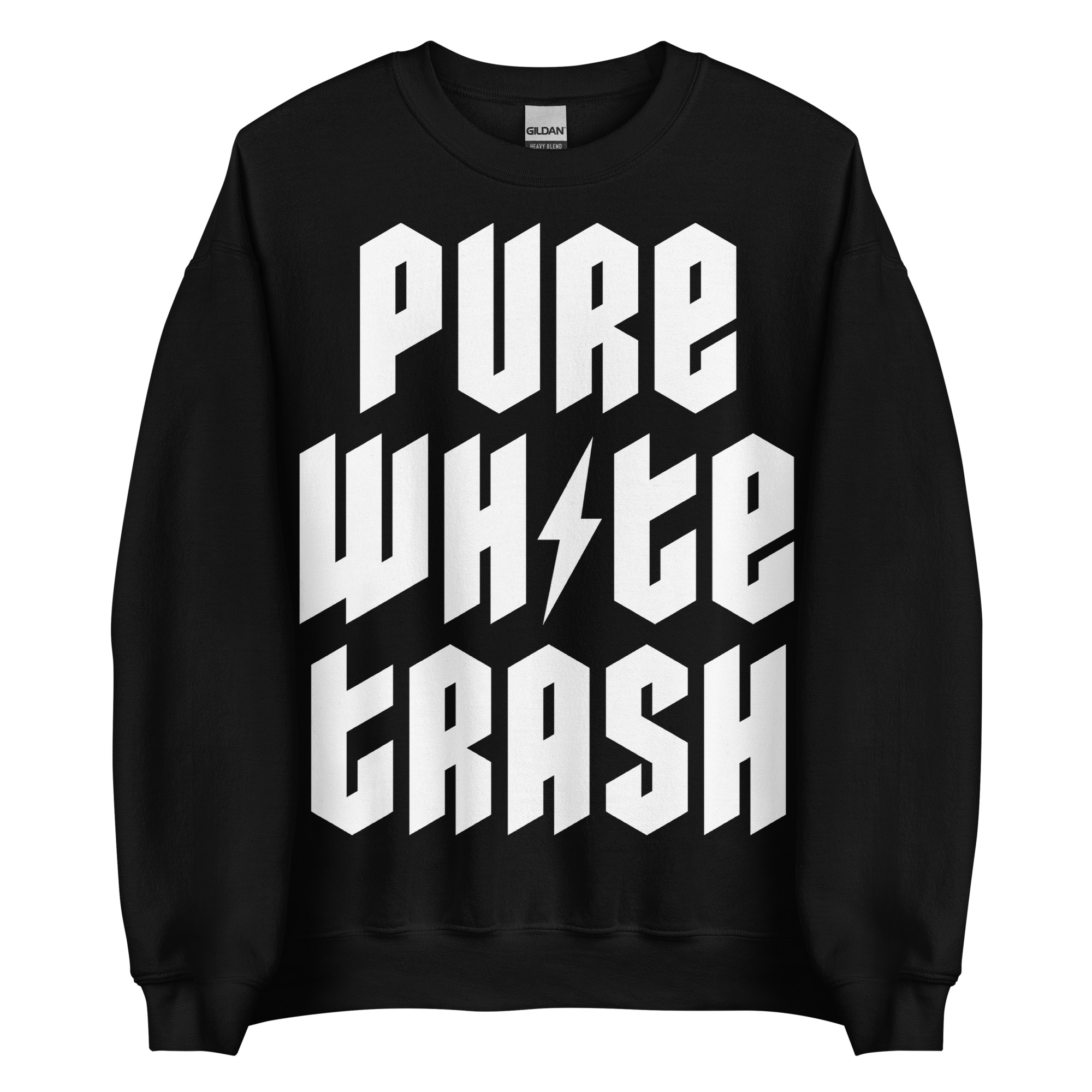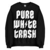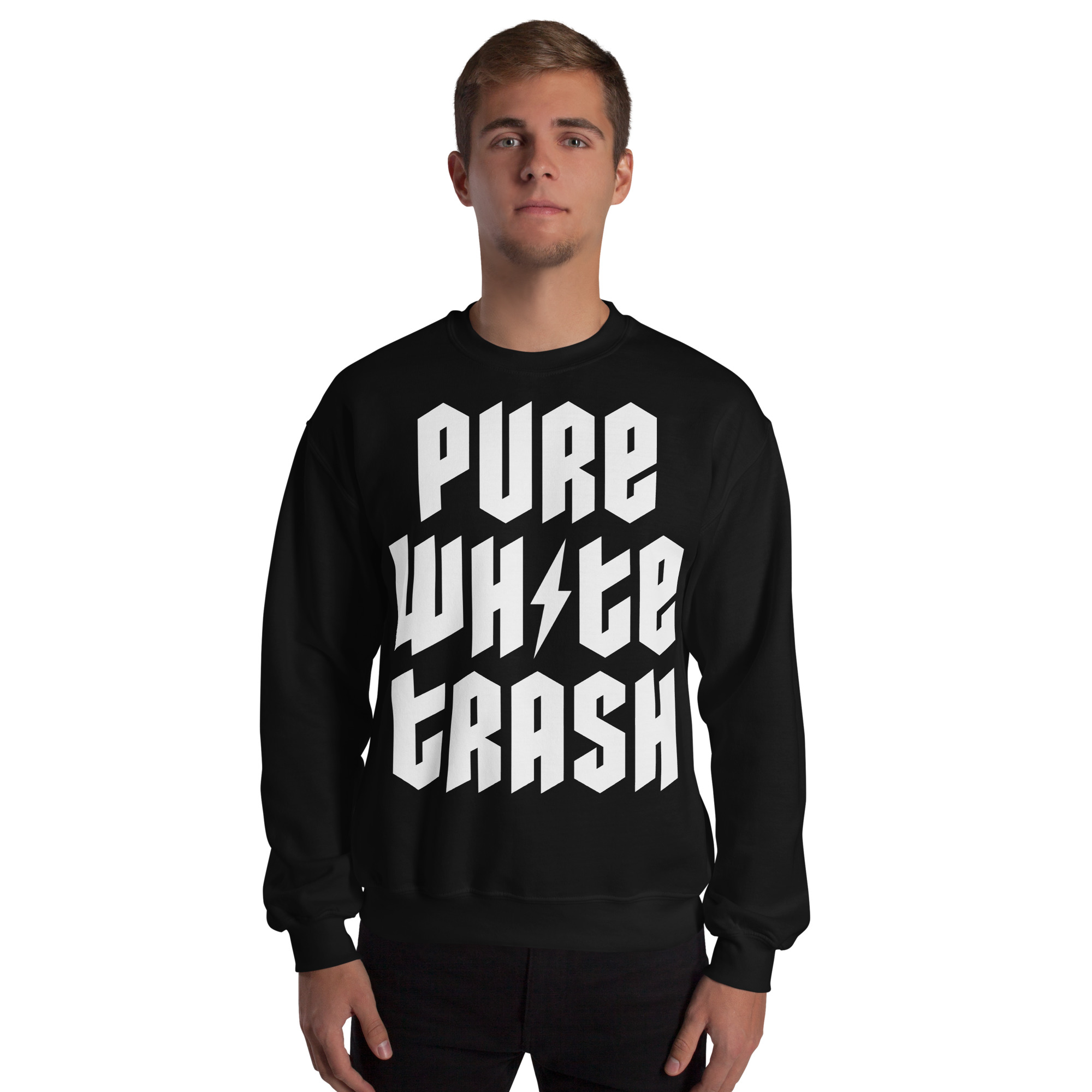 Varm och skön sweatshirt i svart tillverkad i blandad bomull/polyester med texten ’Pure white trash’ som dekoration på framsidan. Unisex-modell som passar perfekt till både män och kvinnor som älskar den alternativa stilen.