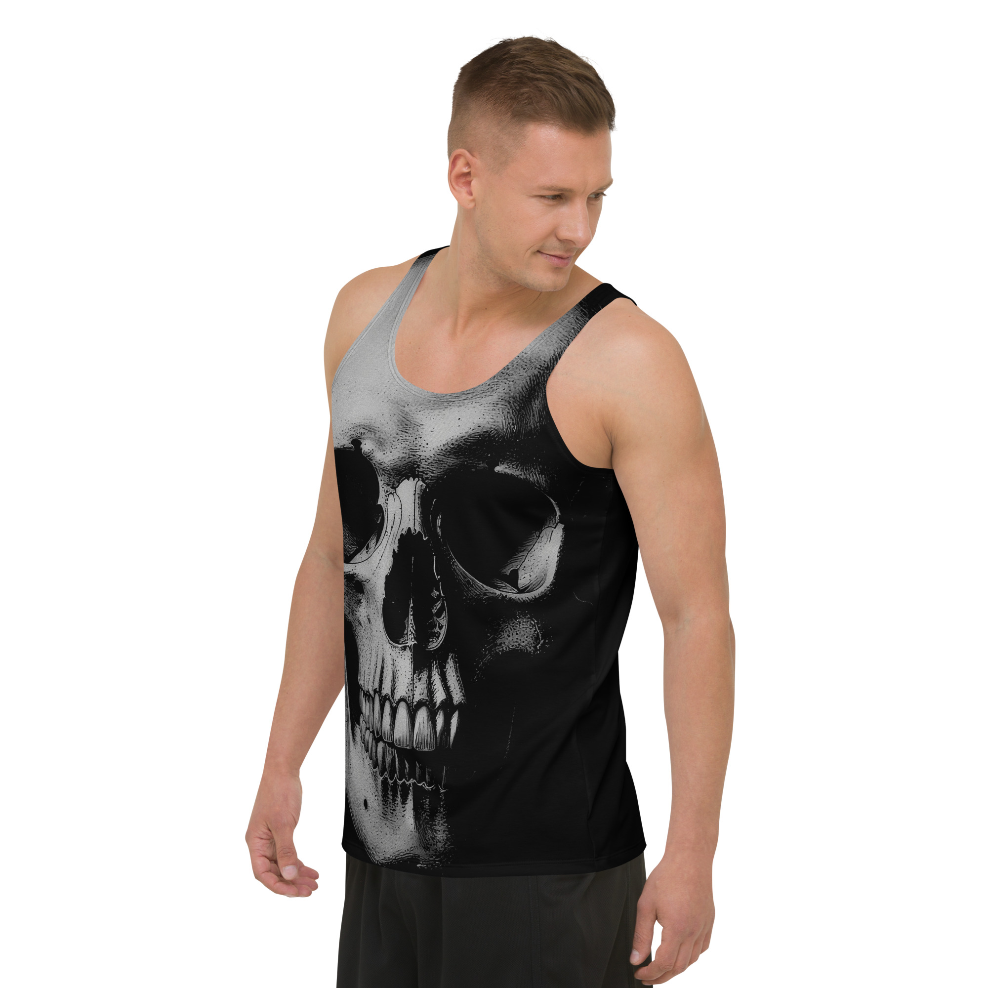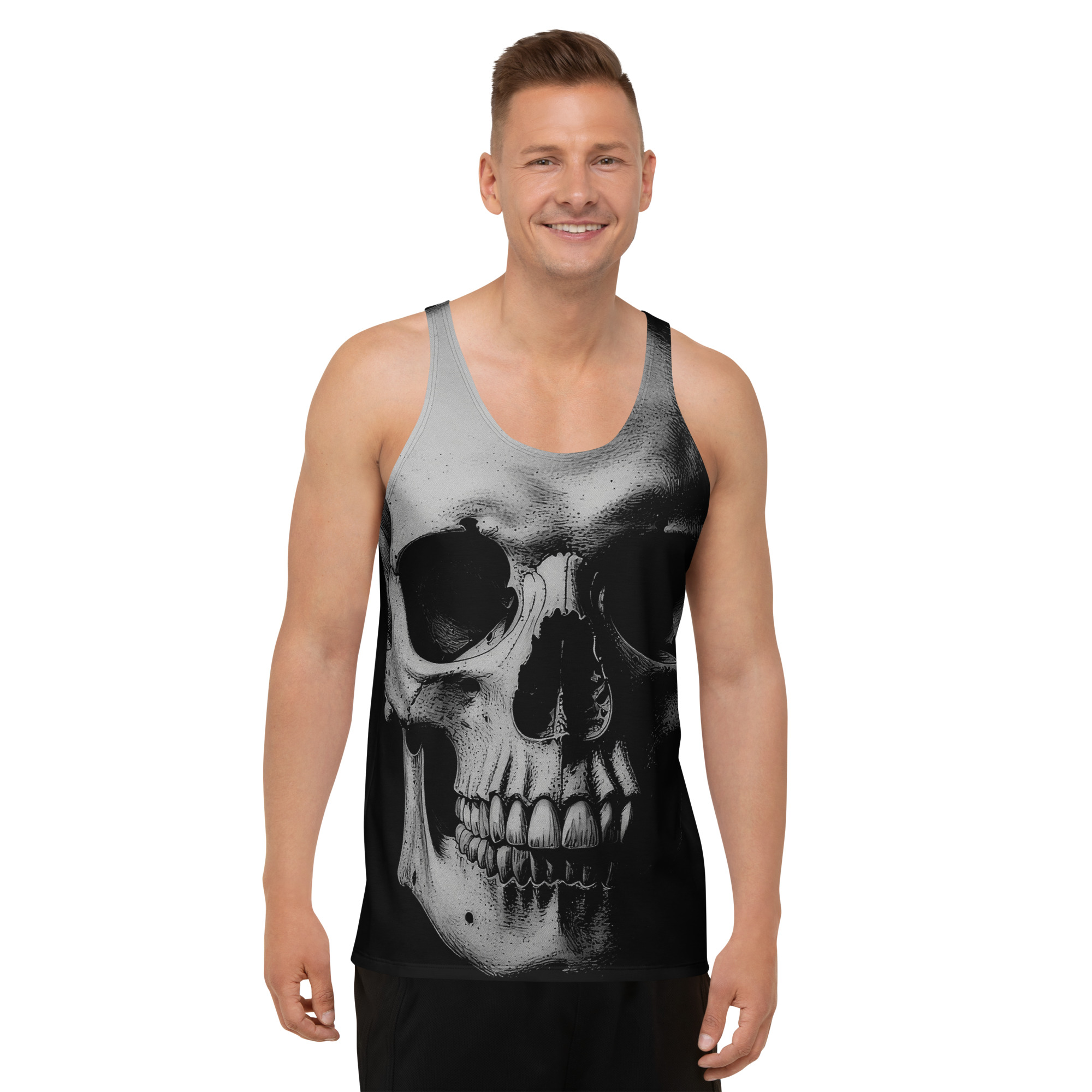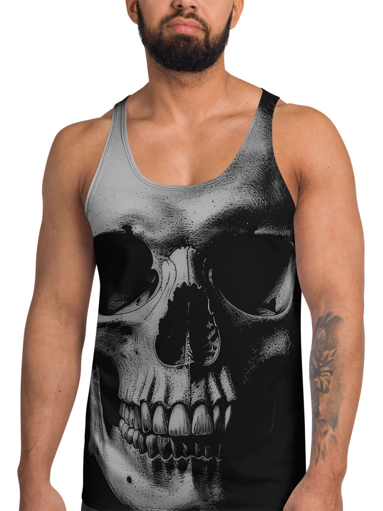 Snyggt linne i premiumkvalitet med en stor detaljrik dödskalle som tryck på framsidan. Tillverkad i supermjuk polyester och elastan av hög kvalitet. Passar både män och kvinnor som älskar den alternativa stilen.